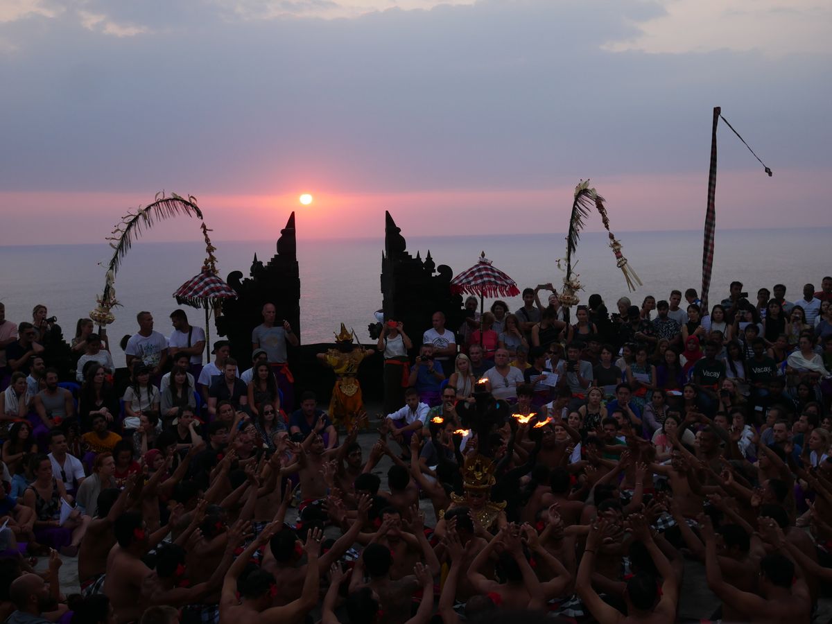 夕陽は見えず18時過ぎに入ったのでケチャックダンスは立見でした。しかしダンスは良かったですよ。食事先わからないからおススメシーフードを選択。最終日なので雰囲気良く観光客相手だからそれなりに高く、味も期待は薄めてましたがまさか罰ゲーム並みになるとは(笑)浜辺でシーフードは良いが前も見えないし、何食べてるか分からず味は個人的意見ですが不味い!臭い!椅子はガタガタ!コケそうで最悪でした。ロブスターとかススメられたりしましたが断って正解でした。今回のツアー不満だらけでしたがガイドさんは良い対応をしてくれました。