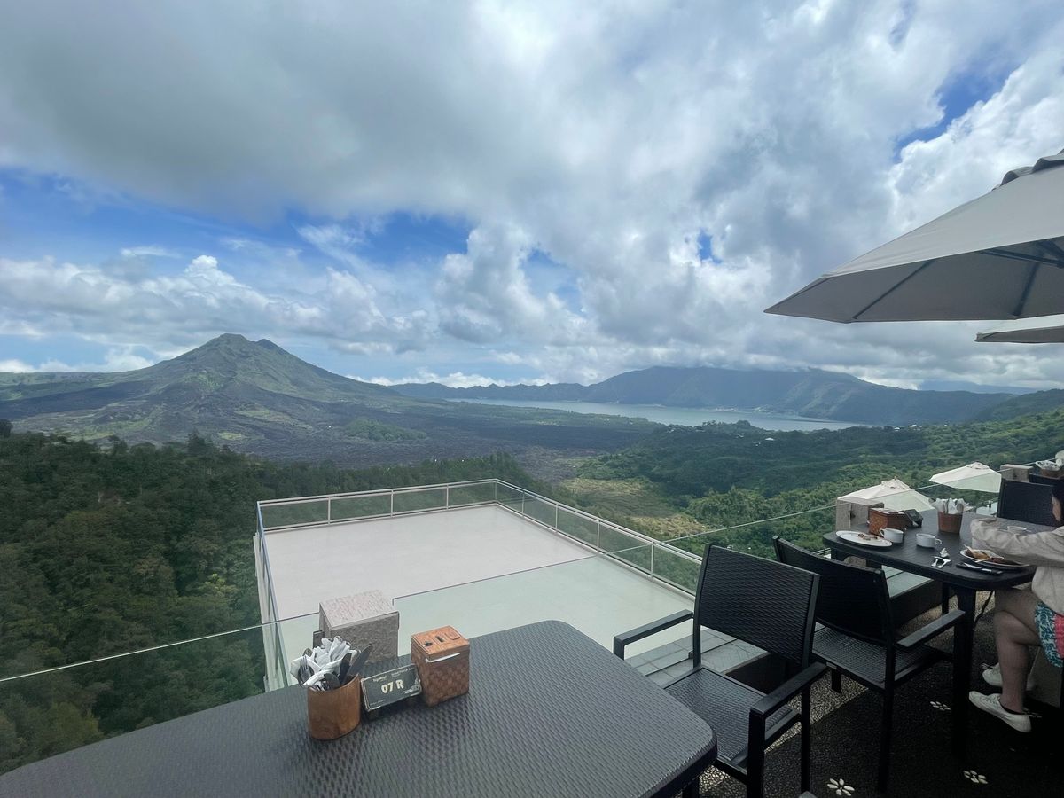 キンタマーニ高原はギリギリ山の頂上まで見えましたが、スコールが多いバリでは見えないこともあるよう。ご飯はバイキングでした。車酔いでほとんど食べられなかったので、オーダー制の方が有り難かった。味はそこそこです。