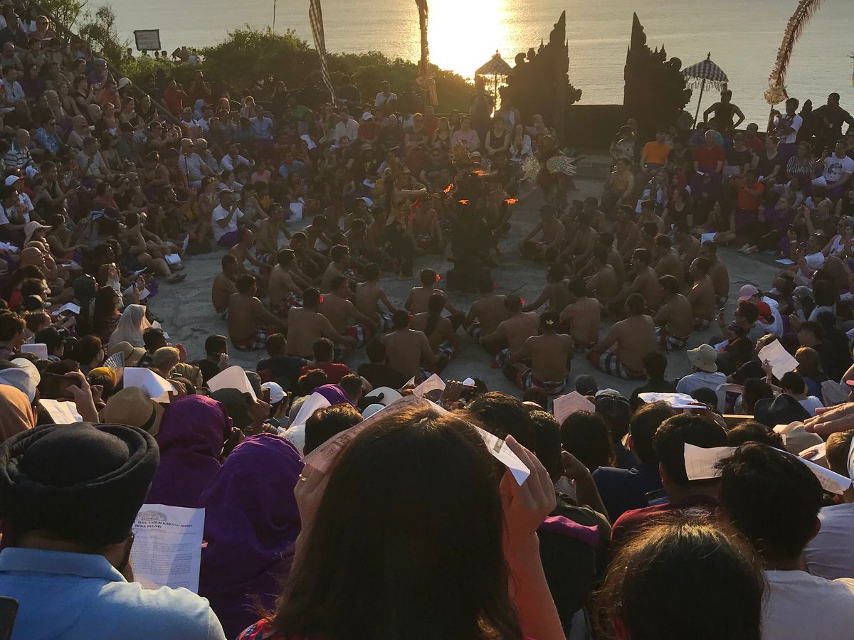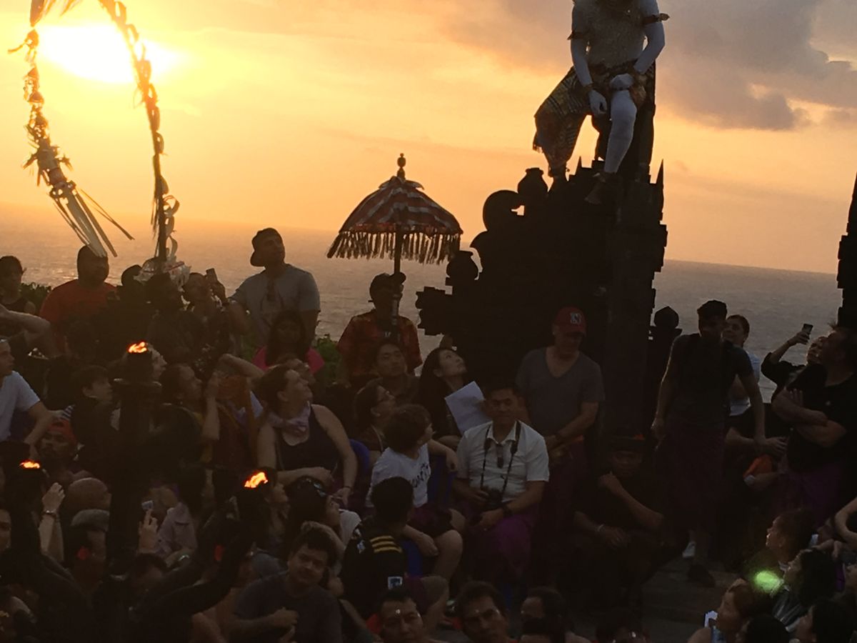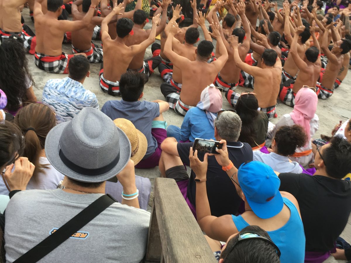 ケチャダンスは、私が以前みたときは、荘厳な雰囲気で、さすが伝統舞踊だなぁと思うエンターテイメントでしたが、今回は割れ門の後ろまでプラスチックの椅子をならべて座らせたり、演者の際の地べたにまで座らせたり商業化してしまって厳かな神々しい雰囲気はなくなってしまってました。途中で座っている観客や演者のあいだを割って退出する人がたくさんいて、失礼だなと思う事も何度もありました。