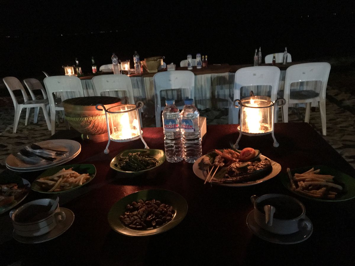 料理は、波の音を聞きながら砂浜で夕食を食べました。子どももテンションが上がって、とても感動しました!