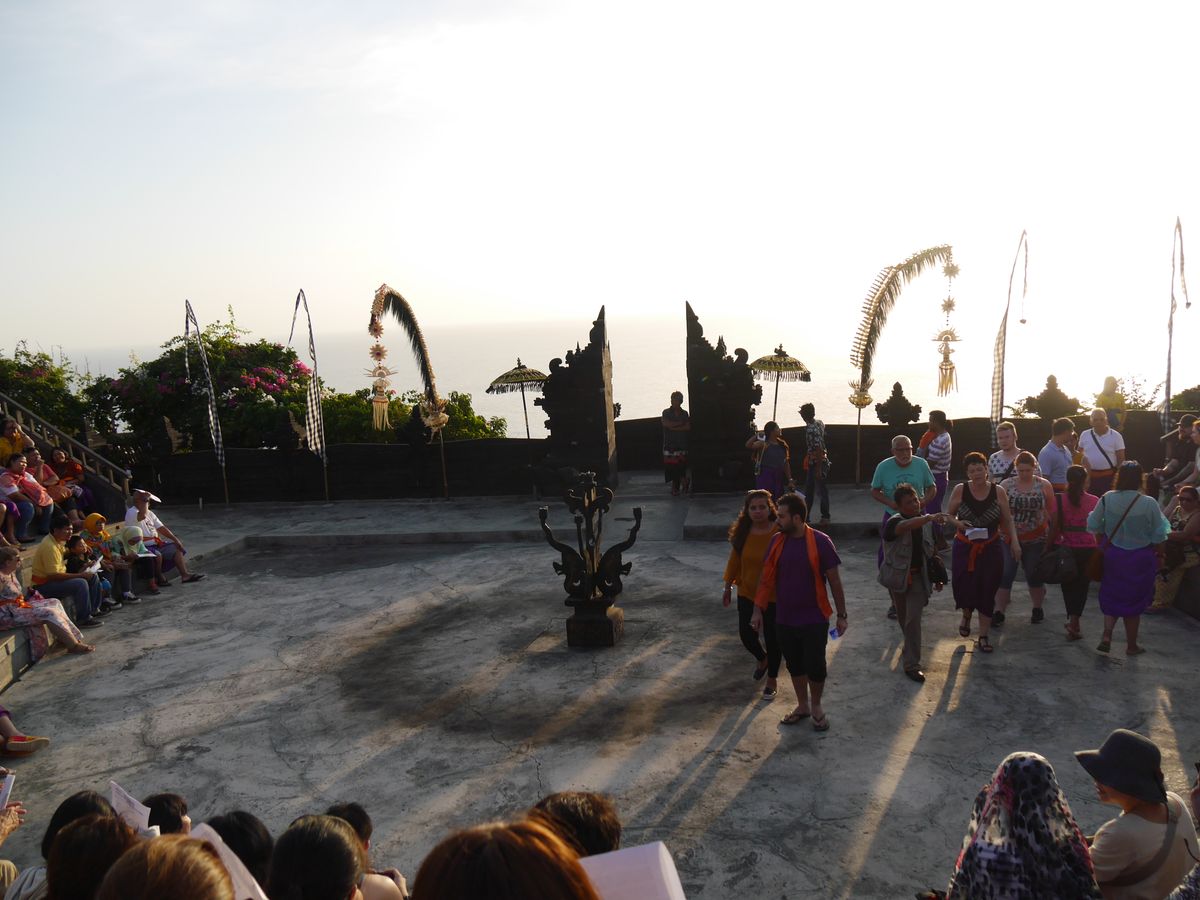 ツアー参加者は私たち夫婦のみでした。ガイドさんがウルワツ寺院について日本語で丁寧に説明してくれました。ケチャダンスは満席でしたが、ガイドさんの指示通りの場所に座ったところ、全体がよく見えるところでよかったです。夕陽も綺麗に見れました。その後、ジンバランビーチでシーフードBBQを堪能しました。海老、烏賊、魚を焼いたものがでてきましたが、冷めてたのが残念でした。夜の海を見ながらのディナーは新鮮でロマンチックでした。