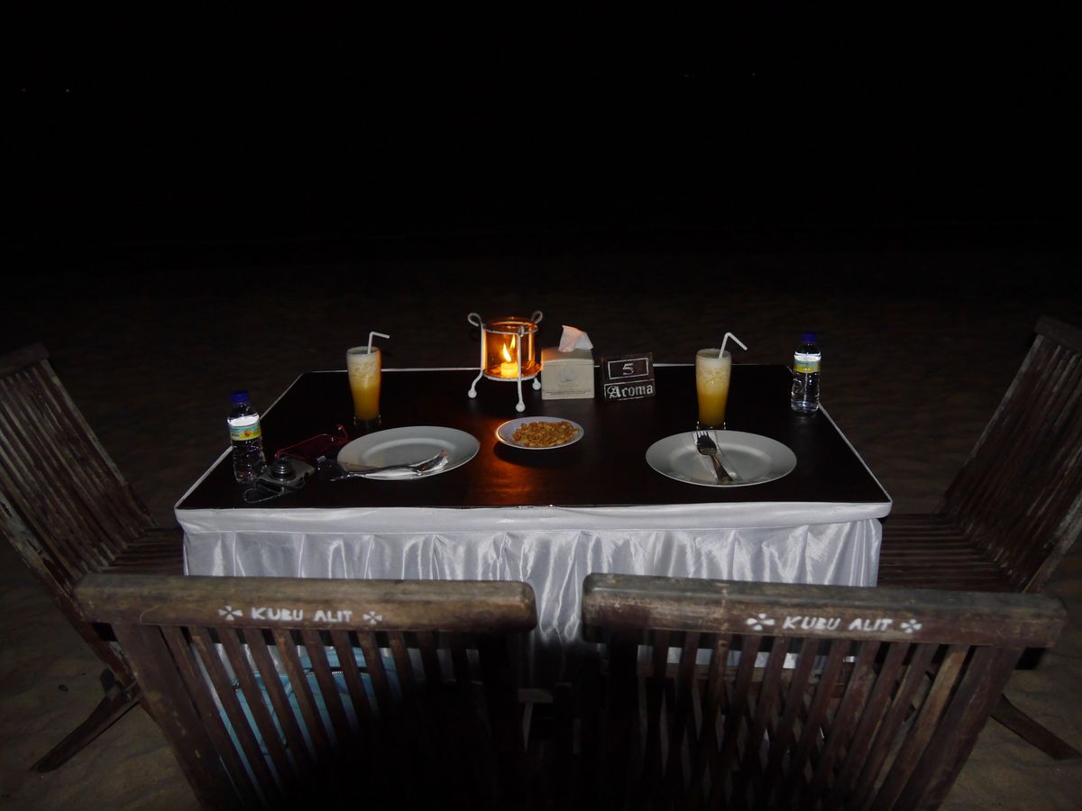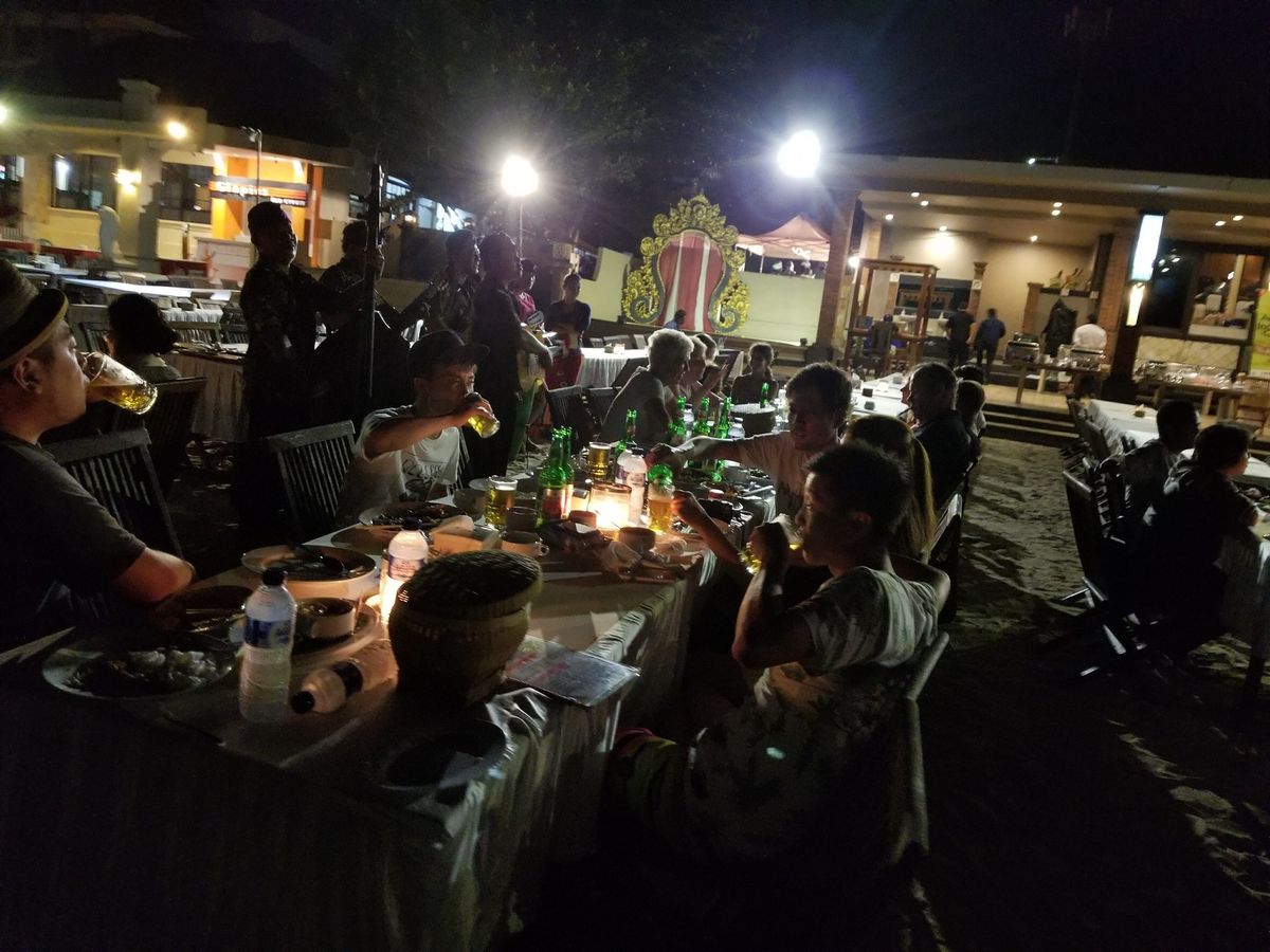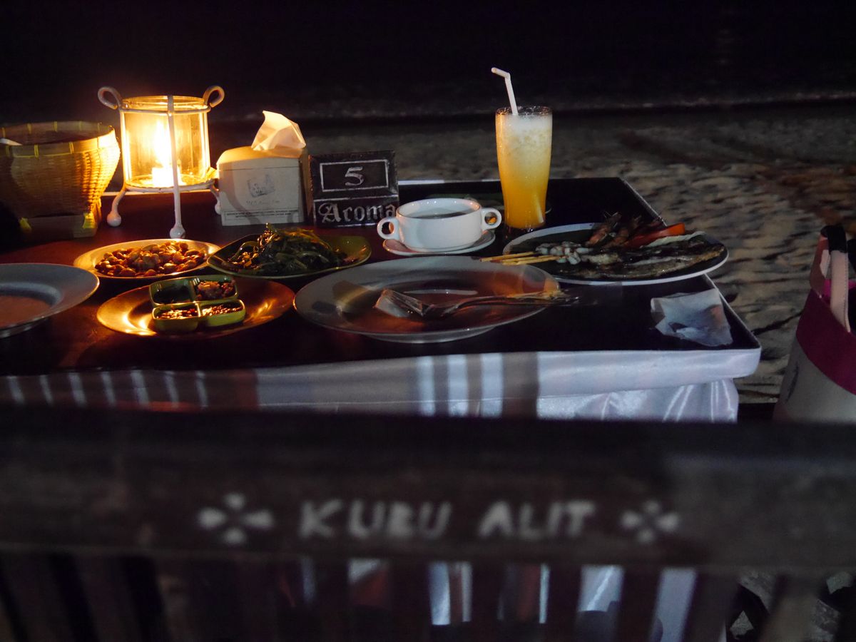ディナーは、夕日がきれいなジンバランでのBQQですが、ケチャの鑑賞途中で日が沈んでしまいますので、月を見ながらの食事になります。焼いた状態での提供ですが、少し冷めている点と、ロブスターが大味だった点を除けば、良かったと思います。