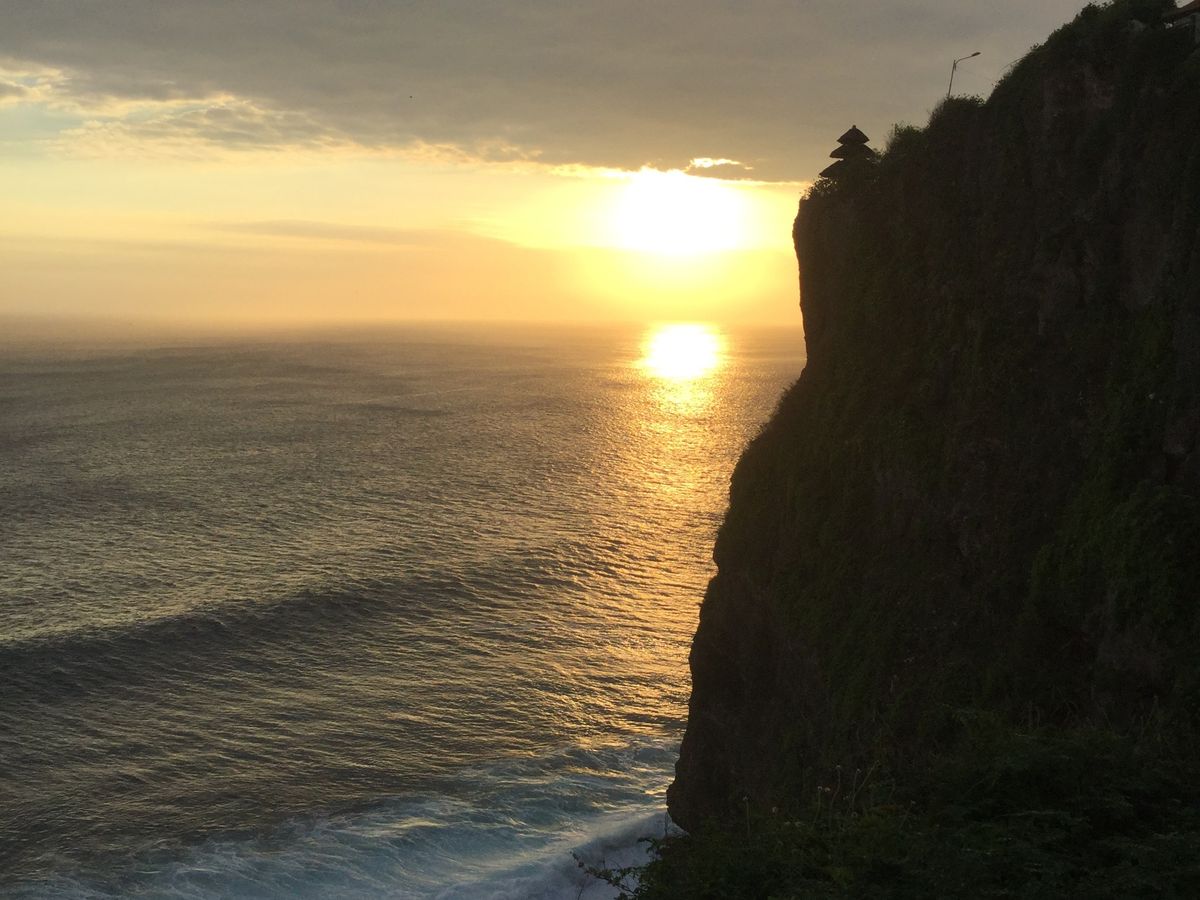 ウルワツ寺院からの夕日は素晴らしいです。断崖絶壁の上にある寺院と夕日の眺めは最高です。