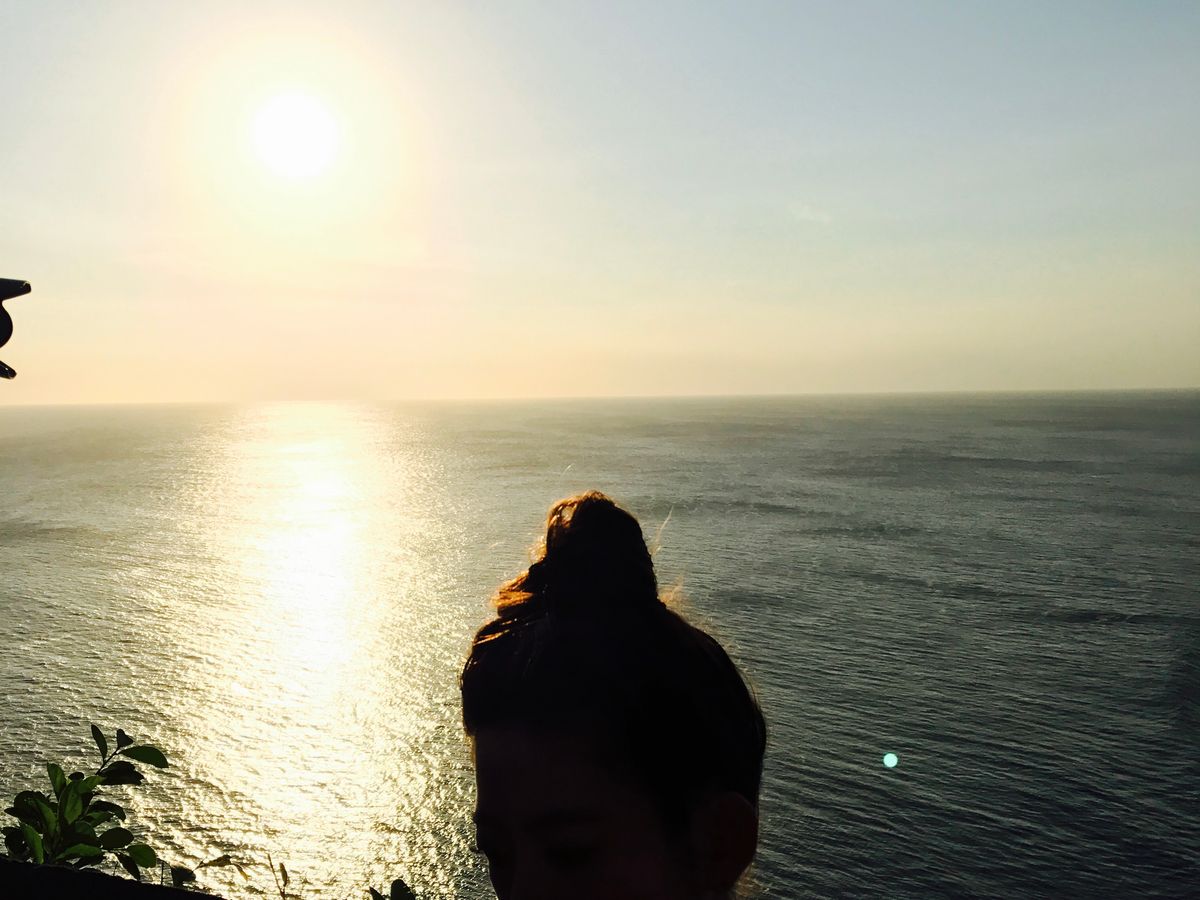 ウルワツ寺院への道のり、最高の夕日は望めない天気でした。ですが、サンセットのタイミングでまあまあ素敵なシーンが見れました。