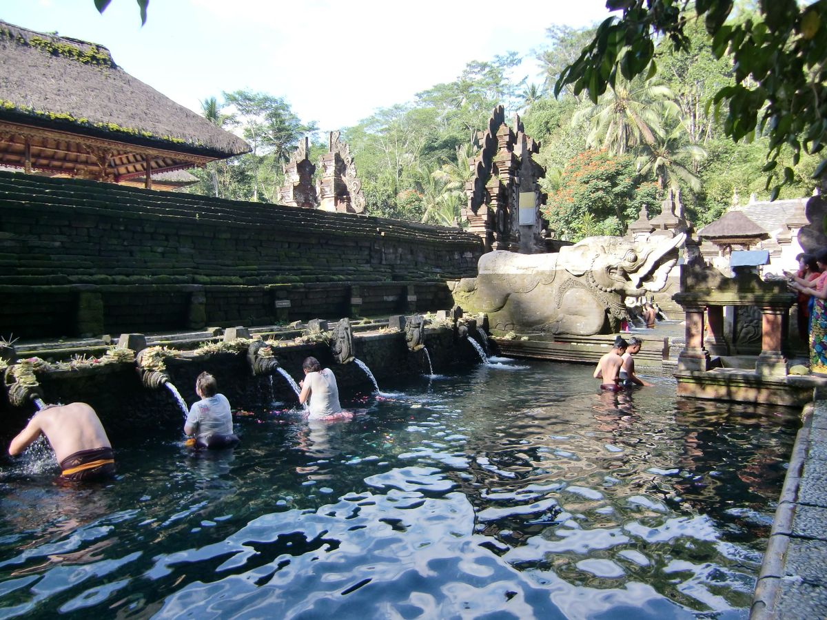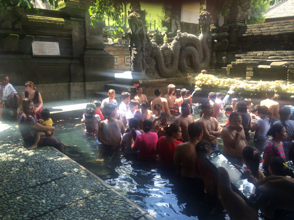 次に、ティルタ・ウンプル寺院へ。多くの人が沐浴していました。聖なる水は万病に効くといわれています。