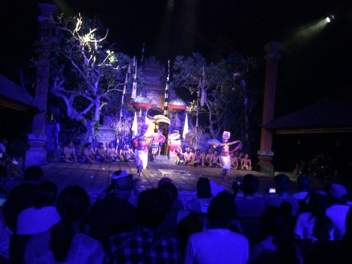 ケチャはずっとケチャケチャ言っていて疲れそう!なんかケチャダンスは日本のロミオとジュリエットのお話しらしく(日本なのか…?自分はよくわかっていない(笑))物語になっているショーでした。ずっと見ているのは辛いな~と思っていたころケチャダンスに出てくる人達が観光客にも声をかけたりちょっかいだして会場全体が笑っていてどんどん楽しくなっていきました!ファイヤーダンスはグアムやハワイのファイヤーショーとは少し違っていたけど、すごく迫力があり圧倒されてしまい興奮しちゃいました!