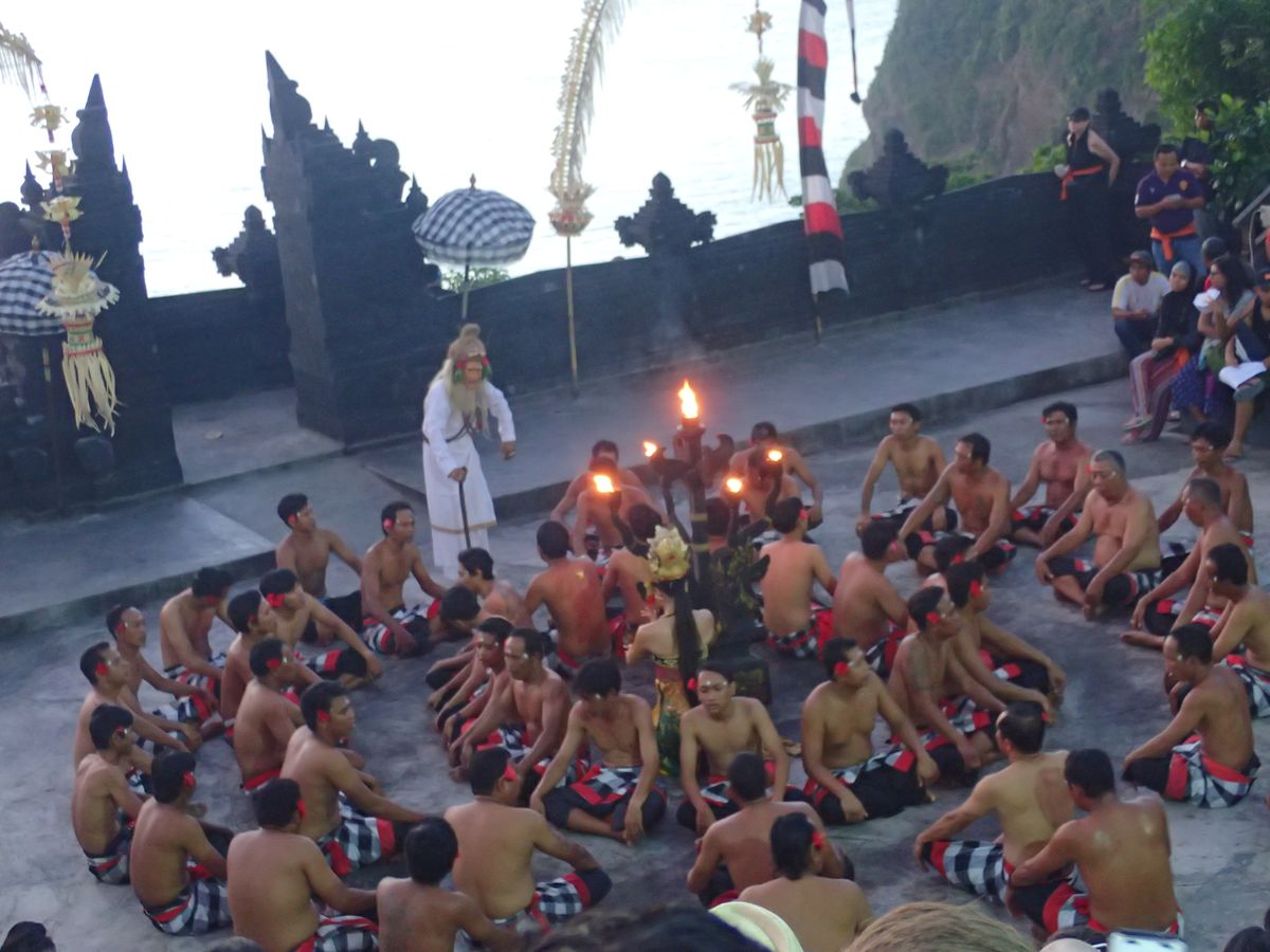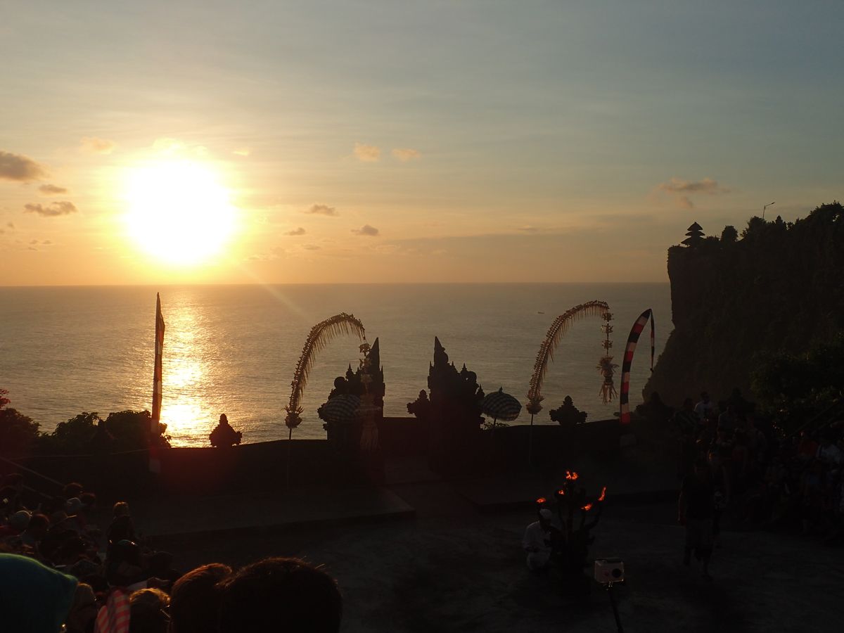 ケチャは、5回目の私も初めての夫も大変楽しめました。待ち時間はストーリーを読んで内容を頭に入れて(&ツッコミを入れて)いたので、開演後は、誰がどんなリズムを刻んでいるのか、今の声はどういうニュアンスか、今の動きは何を示しているのか、などをチェック/想像しながら楽しめました。沈む行く夕日や寺院をバックに、日本では体感できないような非常に神秘的な空間となります。