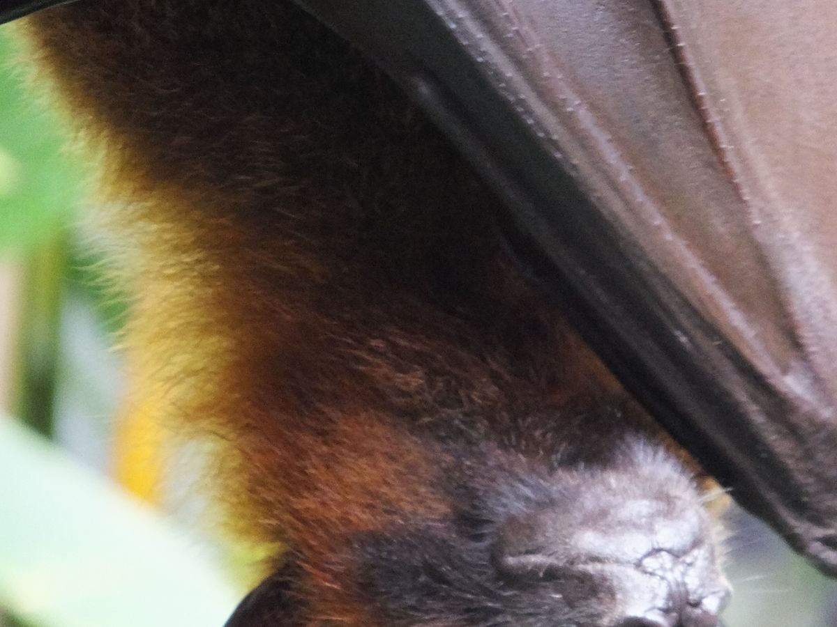そして遅めの昼食。入口に蝙蝠のいる見晴らしの良いレストランでビュッフェです。味は予想通り、ビール2本追加で1000円くらいでした。