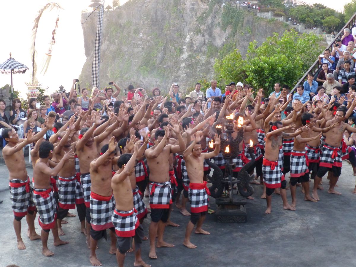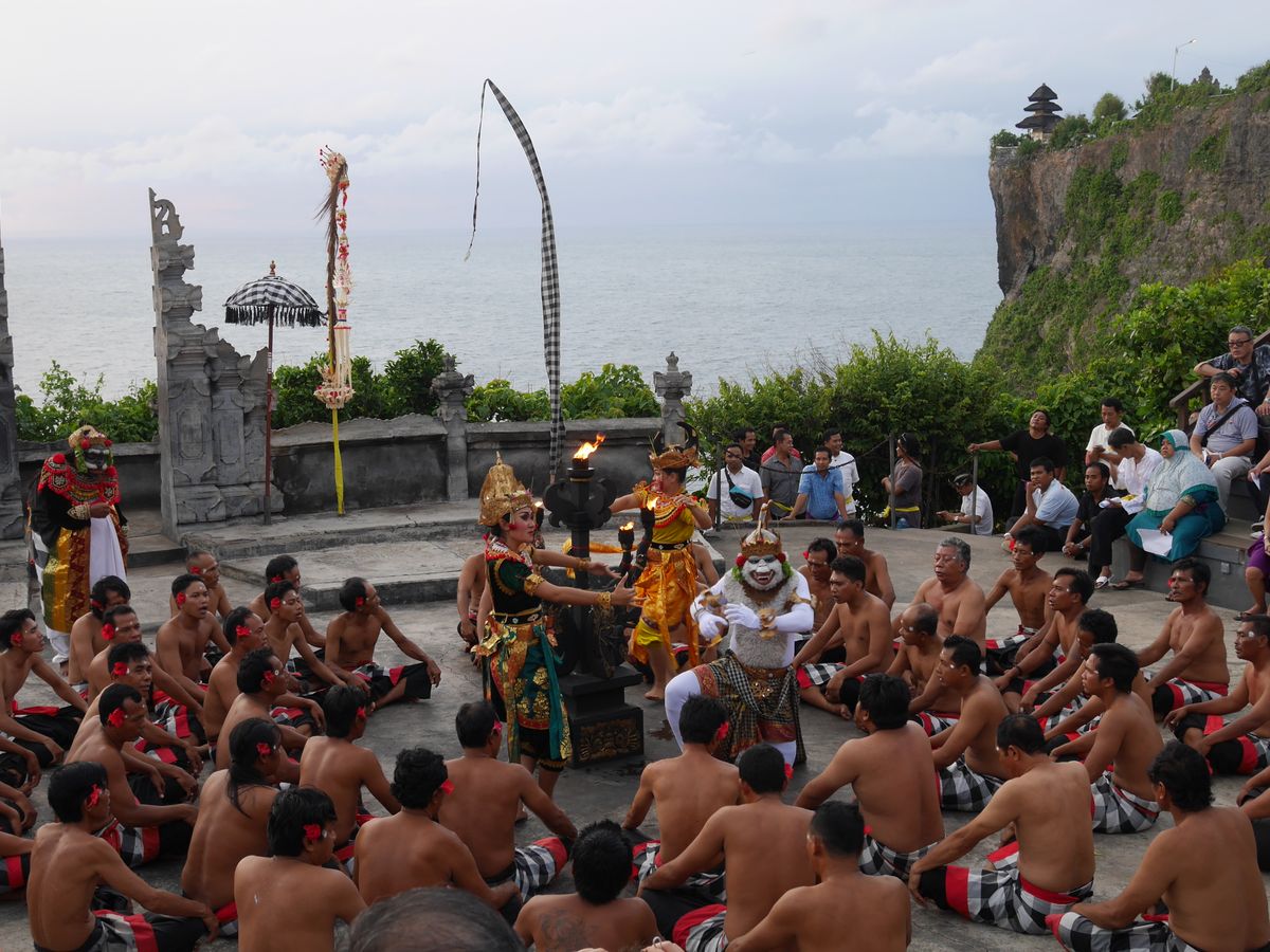 ウルワツ寺院からみるインド洋の大絶景はとても素晴らしかったです。ケチャックダンスの時間に合わせツアーが組まれており、余裕をもって最前列を確保できました。肝心のダンスは、一時間の間、男性たちが声を出し続けて、リズムをとっていたのには、驚きましたし、ストーリー仕立てて、ユニークで、終盤にかけてとても面白かったですよ。