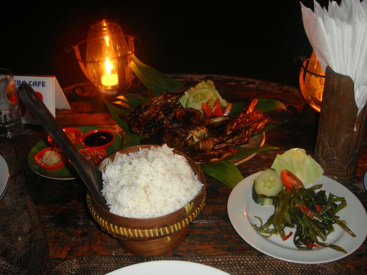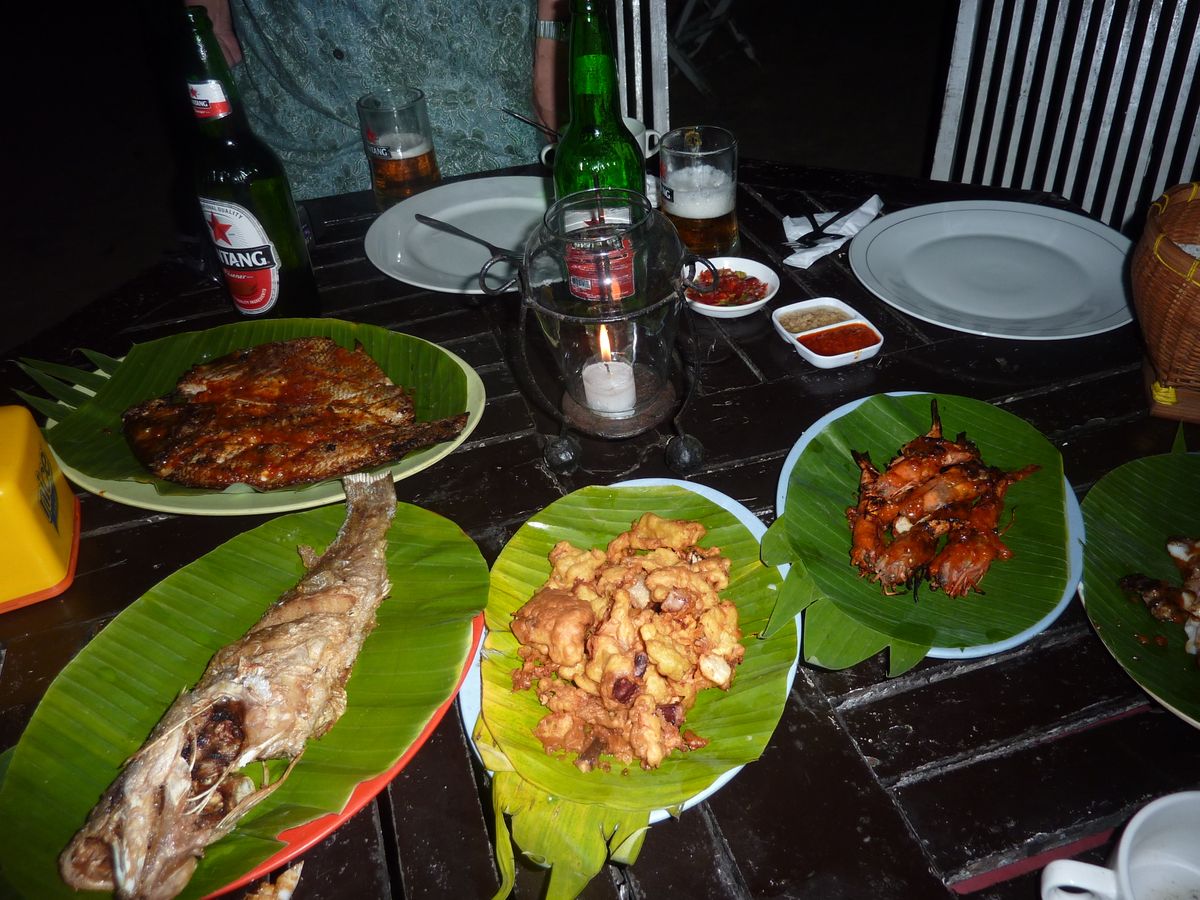 夕食の海岸のシーフードバーベキューは、最初は食べきれるかなと思うくらいの量でしたが、美味しかったので全部いただきました。。(昼食抜きだったから?)