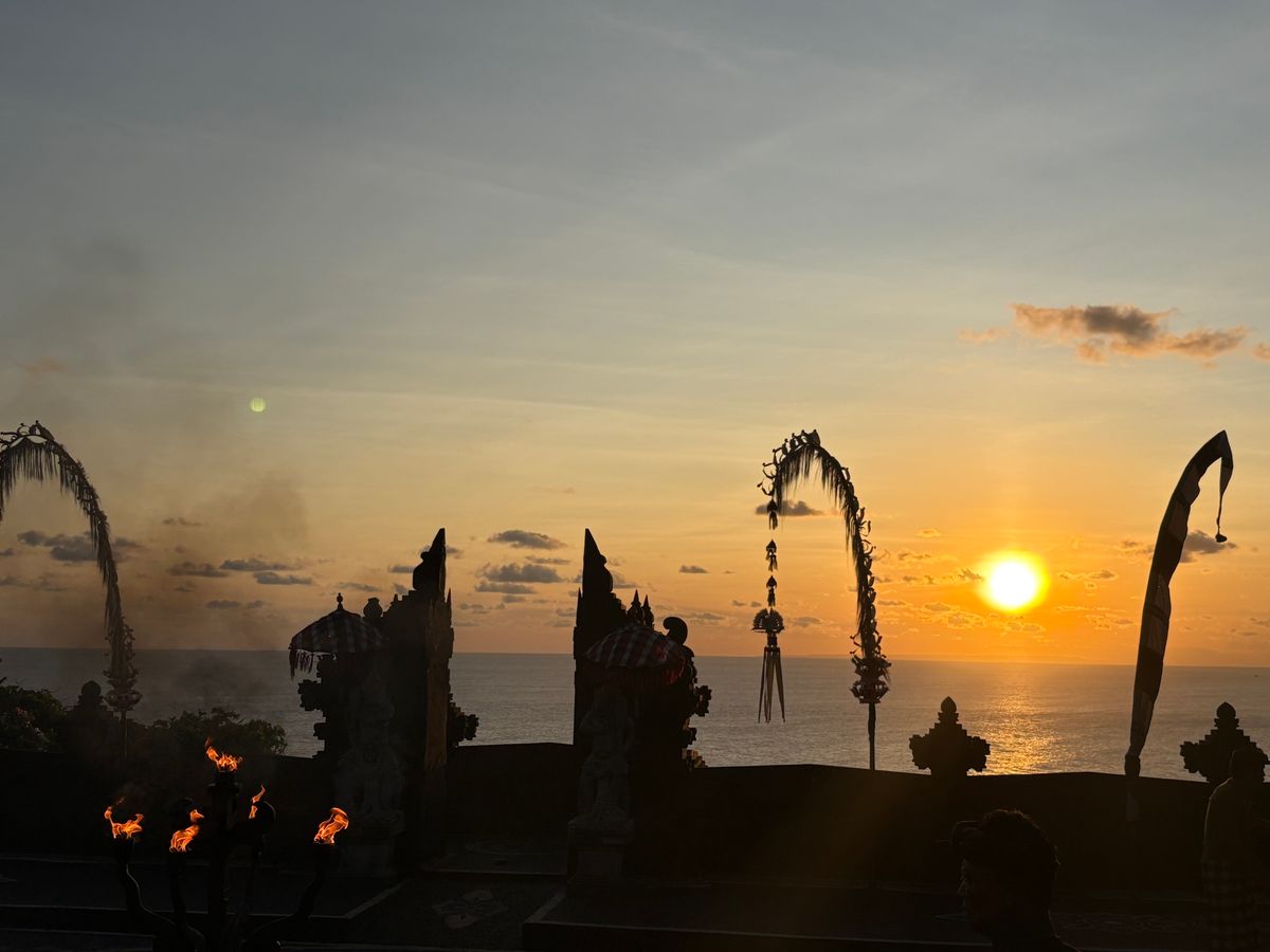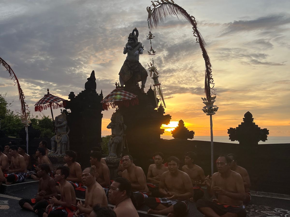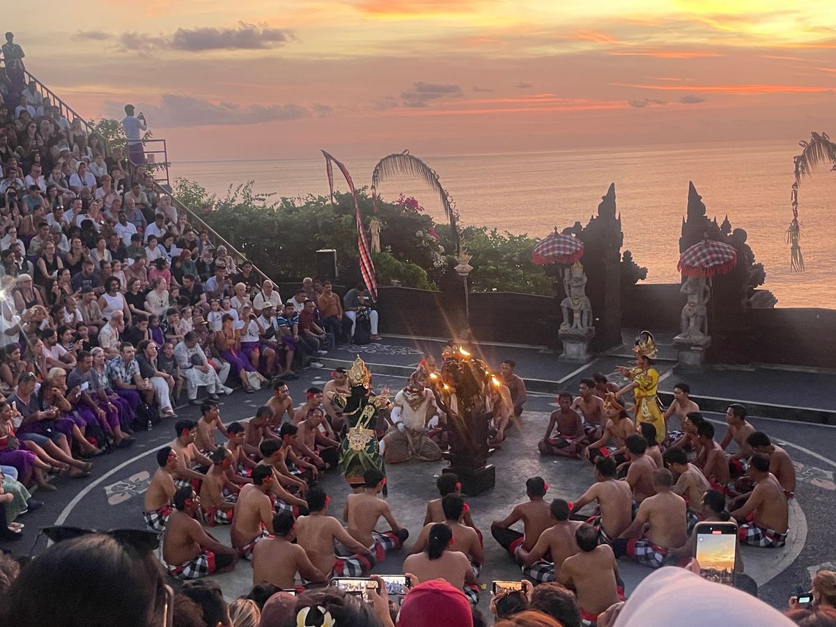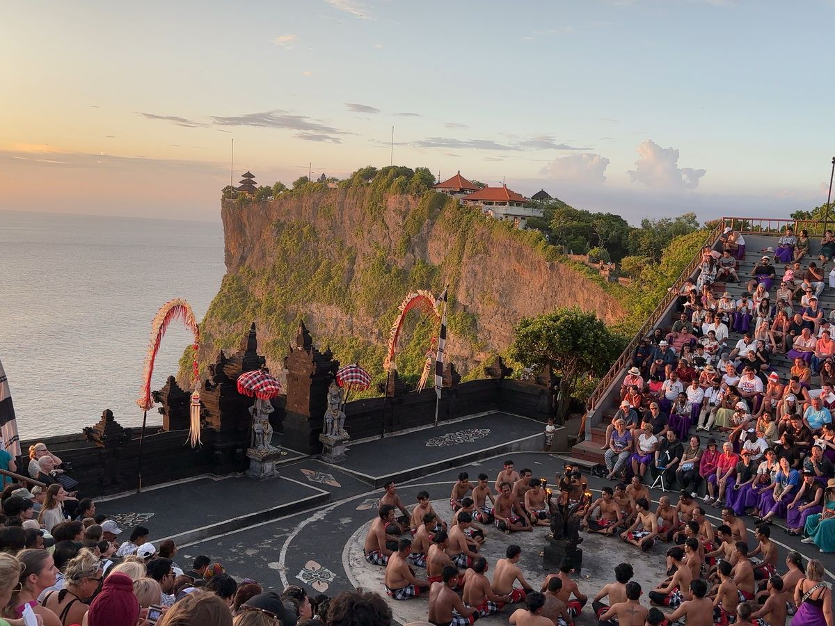 ウルワツ寺院の夕陽、ケチャックダンス鑑賞、シーフードBBQのツアーにパートナーと参加しました。