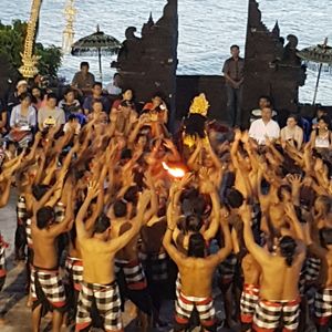 2回目のバリで、前回はウブドでケチャを観たのですが、今回は有名なところで観たくて、こちらのツアーに参加しました。ガイドさんもフレンドリーで、楽しい方でした。ケチャのチケットを取るために一生懸命頑張ってくださり、本当に感謝しています。前の方の席も確保してくれたので、ケチャを間近で楽しめました‼︎きれいな夕日と共に、とても素敵な思い出になりました‼︎