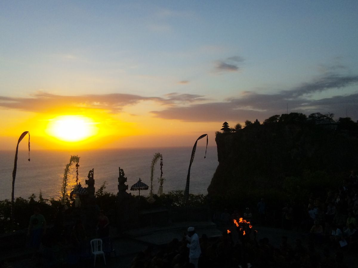 ウルワツ寺院は雰囲気のある場所で、とにかく眺めがよかったですし、夕日は本当にきれいでした!ケチャックダンスは、アレンジ・アドリブが結構あるのか、最終的に何人か観光客の方も参加する流れになり、笑いが起こるような楽しいショーでした。