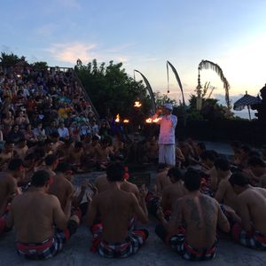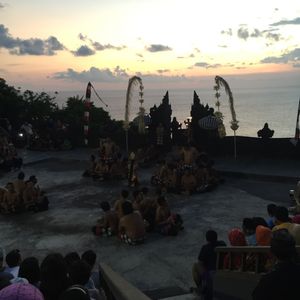 ケチャは、5回目の私も初めての夫も大変楽しめました。待ち時間はストーリーを読んで内容を頭に入れて(&ツッコミを入れて)いたので、開演後は、誰がどんなリズムを刻んでいるのか、今の声はどういうニュアンスか、今の動きは何を示しているのか、などをチェック/想像しながら楽しめました。沈む行く夕日や寺院をバックに、日本では体感できないような非常に神秘的な空間となります。