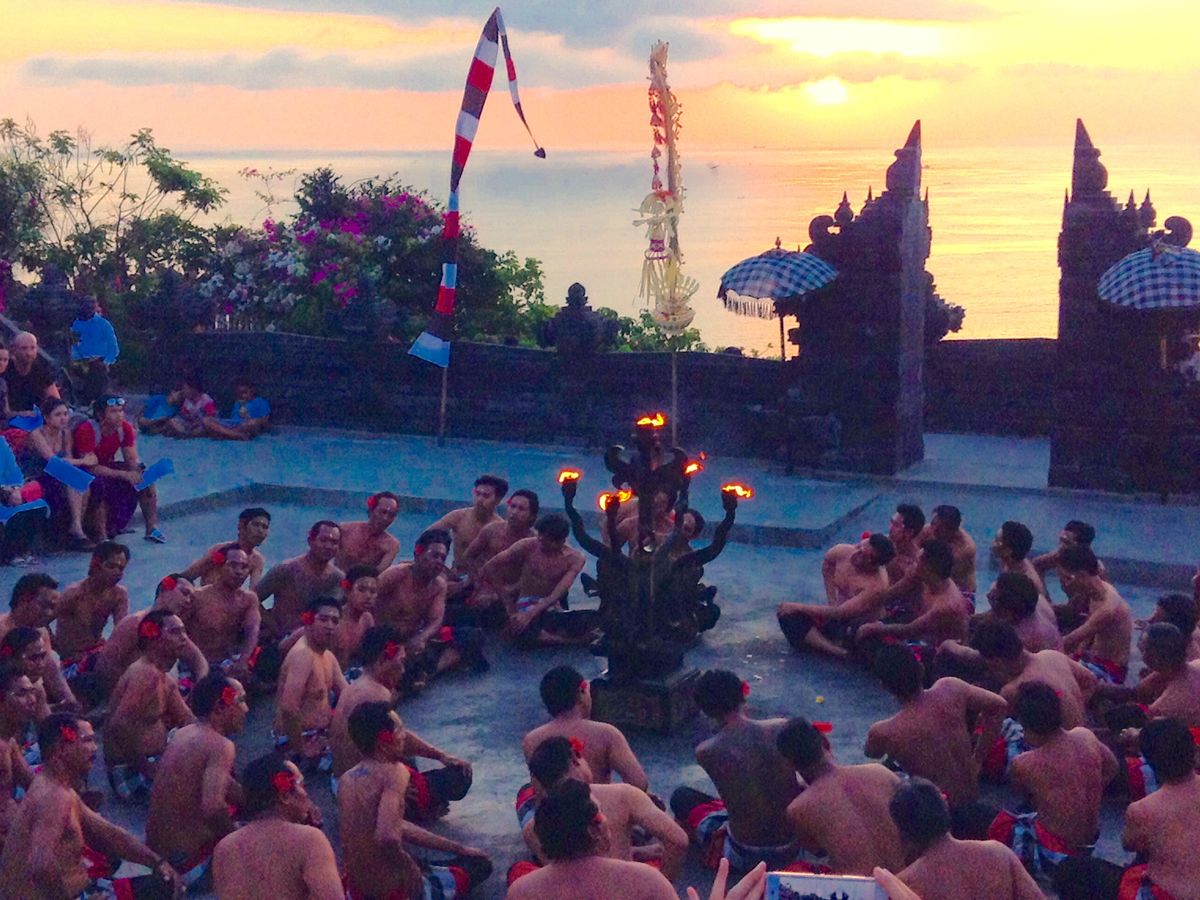 当日は晴れて絵のような素晴らしい絶景の崖を見ることができました。遠かったけど、行って良かったと思えました。ケチャは1時間鑑賞しました。さいごに出演者と、無料で写真を撮れたのも良かったです。