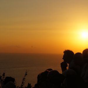 ケチャックダンスの鑑賞時間が近づくと、断崖絶壁を遠景に拝め、ダンスも見やすい円形野外劇場の良い席へ案内してくださり、迫力のケチャックダンスとともに、暮れゆく日没の景色を堪能。1時間余り、思ったより長い鑑賞でしたが、物語を盛り上げるケチャックダンサー以外のキャラクター、白猿や鹿などの躍動感あふれる動きと、観客を巻き込んだ茶目っ気のある演出に、会場からは度々、笑いと歓声が沸きあがっていました。