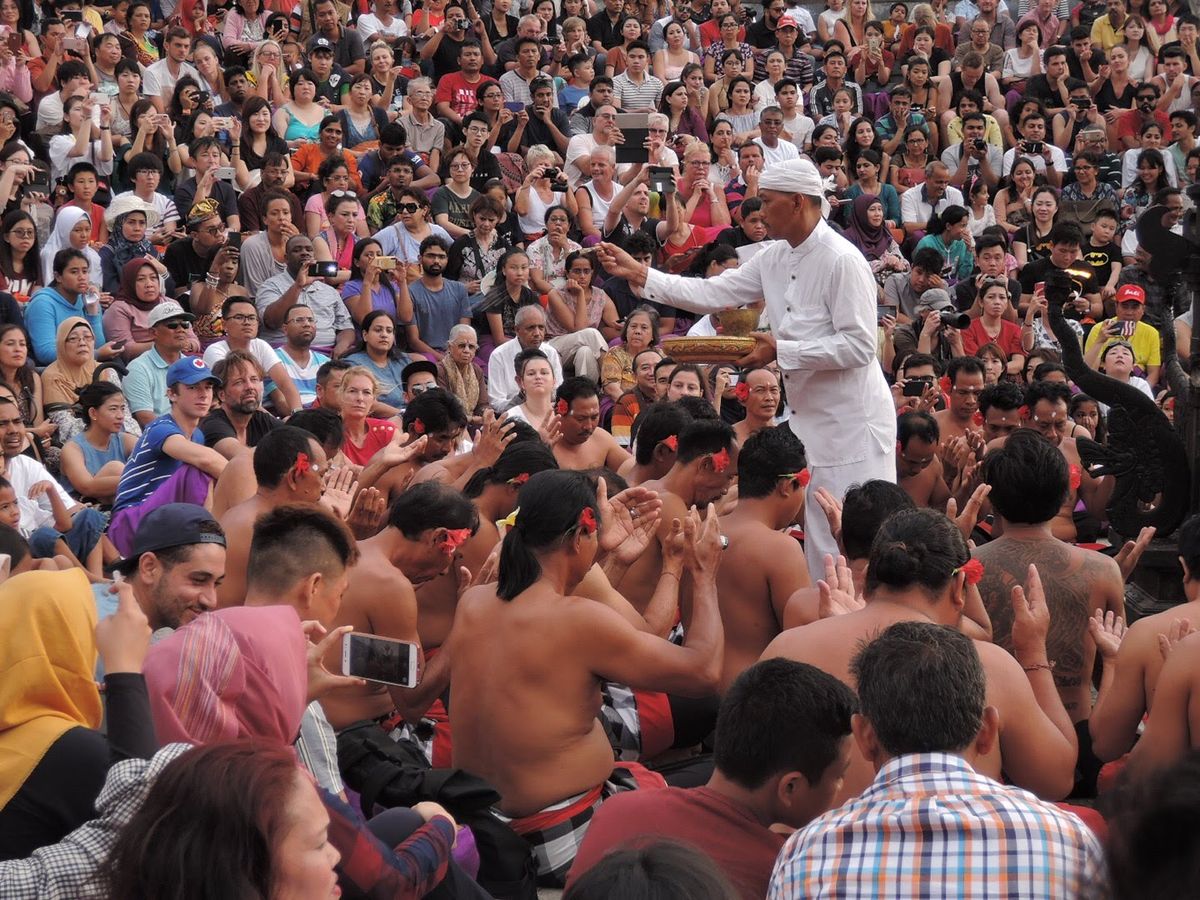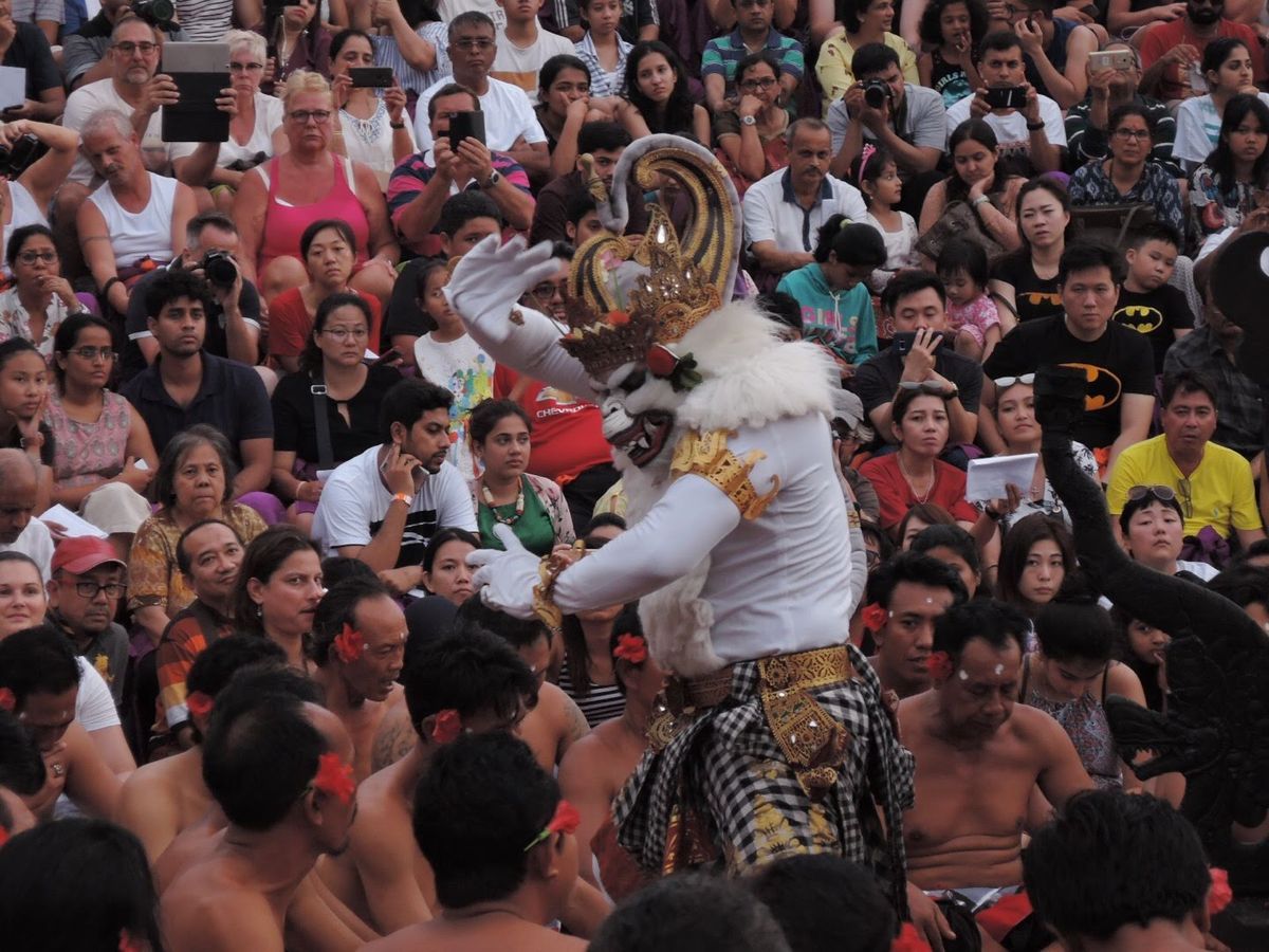 ケチャダンスは、私が以前みたときは、荘厳な雰囲気で、さすが伝統舞踊だなぁと思うエンターテイメントでしたが、今回は割れ門の後ろまでプラスチックの椅子をならべて座らせたり、演者の際の地べたにまで座らせたり商業化してしまって厳かな神々しい雰囲気はなくなってしまってました。途中で座っている観客や演者のあいだを割って退出する人がたくさんいて、失礼だなと思う事も何度もありました。