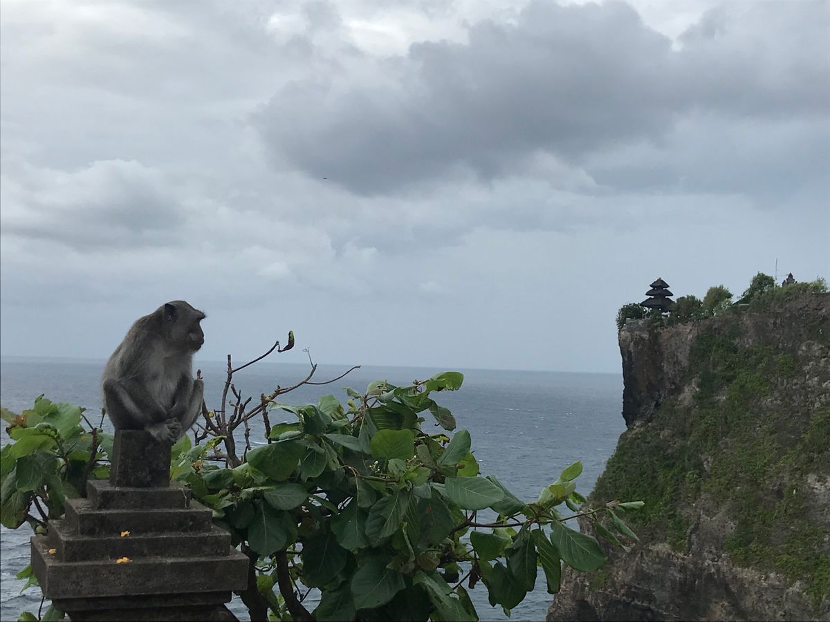 ウルワツ寺院周りには猿がいて、メガネやスマホやペットボトルを略奪するので、ご注意を!