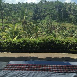 棚田をみたり、ウブド街歩きの後、おしゃれなレストランでナシチャンプルの食事をとり、午後はお昼寝しながら移動しました。