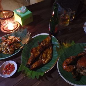 イカンバカールの屋台は、仕組みが分からないまま、ガイドさんが「このお店で食べて。1時間後にお迎えに来ます。」とムアヤビーチ地区の駐車場から降りてすぐのお店へ、知り合いと思われる店内スタッフにも促され案内されそうでしたが、てっきりもっとイカンバカールの雰囲気を見て自分達でお店も選べると思っていたので、そこはしっかり言った方がいいです。(お店の人に取り囲まれても強く主張した方が良いです。)また、このムアヤビーチ地区は2005年に爆弾テロで日本人観光客も犠牲になった場所なので、私たちは最初から行こうと思っていたイカンバカールの地区ではありませんでした。