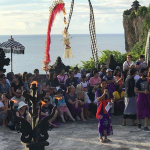 初めてウルワツ寺院を見学し、ケチャックダンスを鑑賞しました。私達が行った日は天気も良く、素晴らしい絶景でした。ただ、日によって違うようなのですがケチャックダンス鑑賞席は満席でした。早めに行って席を確保した方がいいです。ダンスは一度は見た方がいいです。
