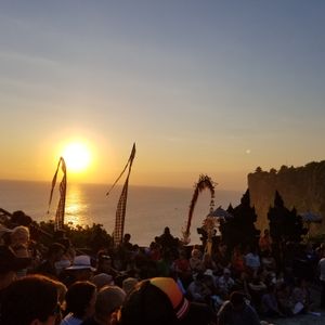 ですよとガイドには言われていましたが、渋滞を考えて自分達の判断で会場を出ました。ウルワツ寺院を遠望しながらの夕日は絶景でした。ダンスが始まる前にはサンセットになります。