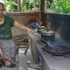 「ルワックコーヒー(じゃこう猫の糞コーヒー)」がほしいので、コーヒー園に連れて行ってもらった。2時到着。8種類ものお茶を試飲させてくれた。これではどんなあつかましい人でも、買わずに帰れない。ちなみに、「ルワックコーヒー」の試飲は有料で、Rp.50,000だそうだ。お土産にRp.250,000のものを購入した。