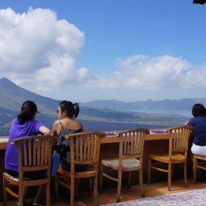 キンタマーニ高原ではバイキングでランチを食べながら湖と山の絶景を楽しめます。(味は、あんまりでした!!)