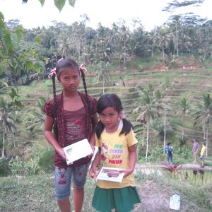 2時45分、「テガラランのライステラス」到着。谷間に造られた棚田である。幼い女の子が2人、絵はがきを売っていた。Rp.1,000札とRp.2,000札があったので、それをあげて写真を撮らせてもらった。どうやら姉妹のようであった。