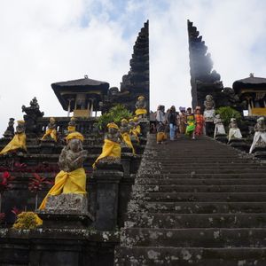 ヒンズー教の総本山ブサキ寺院の壮大な全容がスコール後の