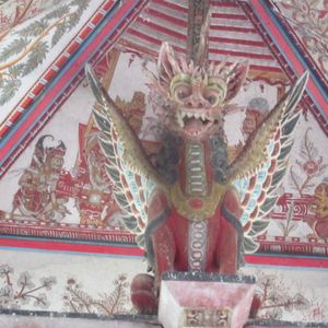 9時40分、「スマラプラ王宮」に到着。入ってすぐ右に「タルタゴサ(裁判所)」があり、たくさんの天井画が描かれている。内容は、日本の地獄絵図のようである。中央には、王の休息場所である、「バレカンバン」がある。ここには「ラーマーヤナ」をモチーフとした天井画が描かれていた。博物館があり、「バリクルクル」もあった。10時20分、出発。