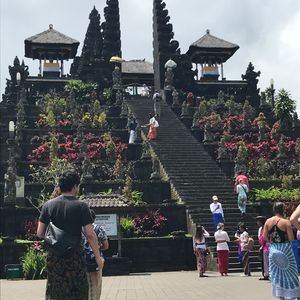 ブサキ寺院は2017年年末から何度も噴火しているアグン山の山麓にあって、ほかのツアーはほとんど中止していた場所。私がツアーを探しているときに唯一ツアーに組み込まれていたのがこのツアーでした。行ってみれば現地はヨーロッパ系の観光客ばかりでアジア人はほとんどいませんでした。バリヒンドゥー特有の建造物の奥には青空とアグン山が見えていて、とても感動しました。気になる方はぜひ行ってみるべきバリ島ナンバーワンのパワースポットです。行く前は少しドキドキしていたのですが、バリのガイドさんと話してみると、噴火もあまりたいしたことないようで(油断は禁物ですが)日本の桜島みたいなもんかなという感覚でした。行ってよかった。私が訪れてから10日後にまた噴火していましたので、行ける時にぜひ行ってくださいね。