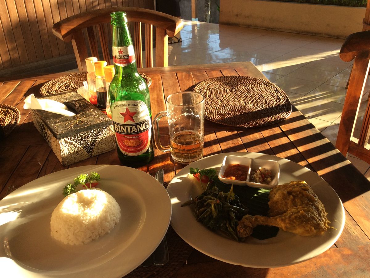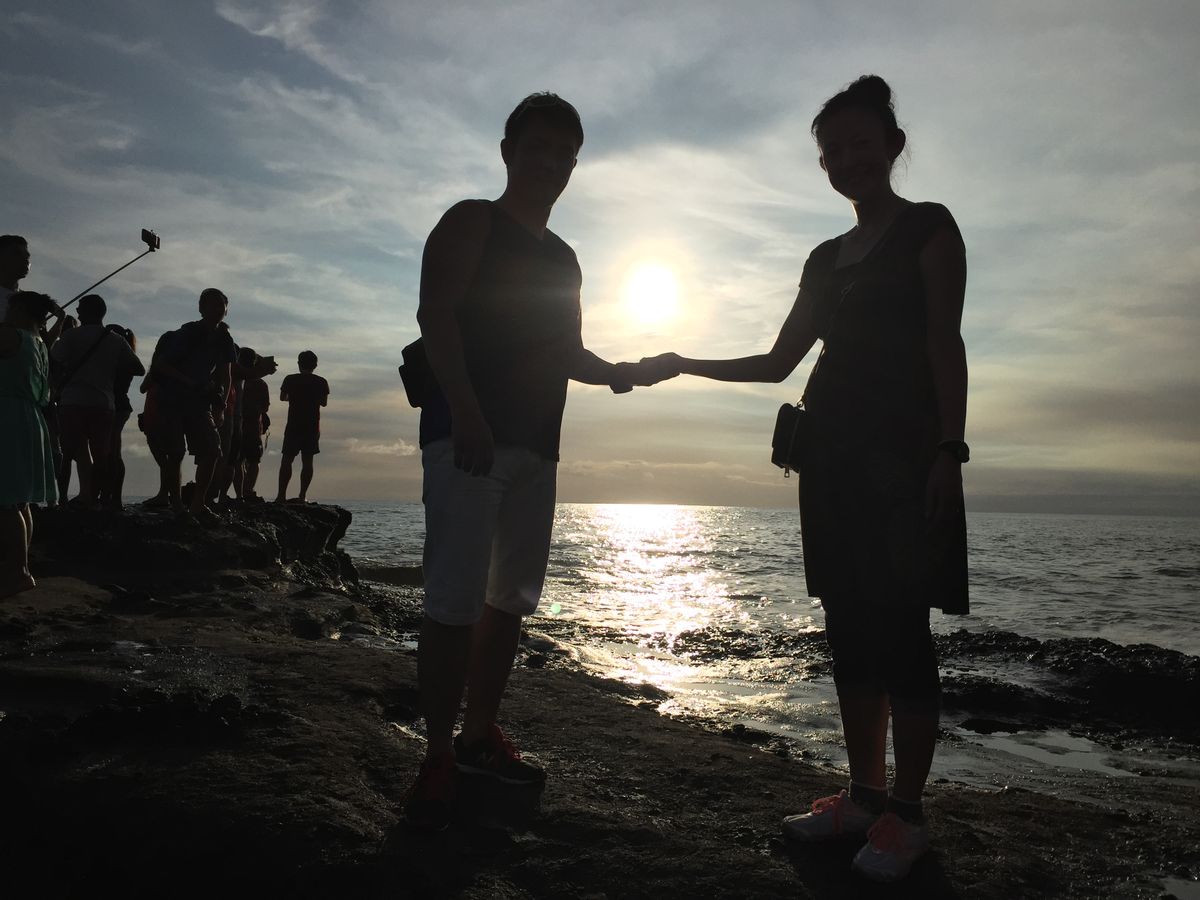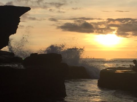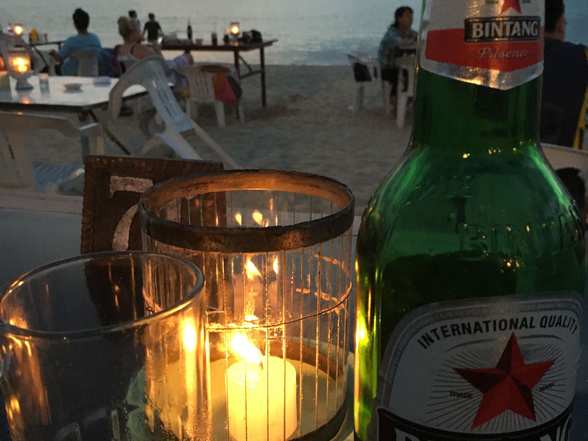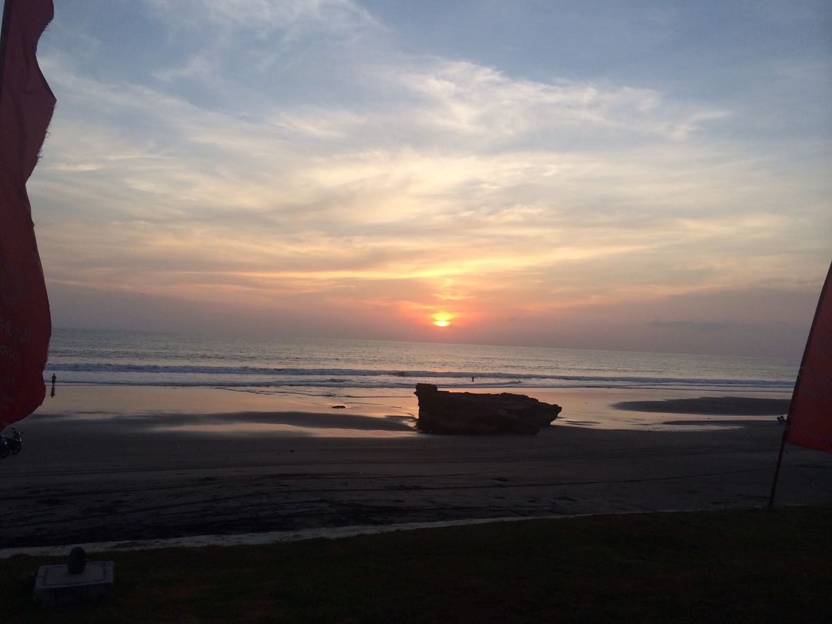 夕日のためにタナロット寺院に向かったのですが、時期のせいか晴れているのに雲が厚い。。。ガイドさんに海辺に行ってみますか?と提案していただきスケジュールには無かったジンバランのイカンバカールの海辺で雲に隠れた夕日を見ながらジンタンビールをいただきました。夕日はとても残念でしたが二日間とも親切にしていただき本当に良かったです。