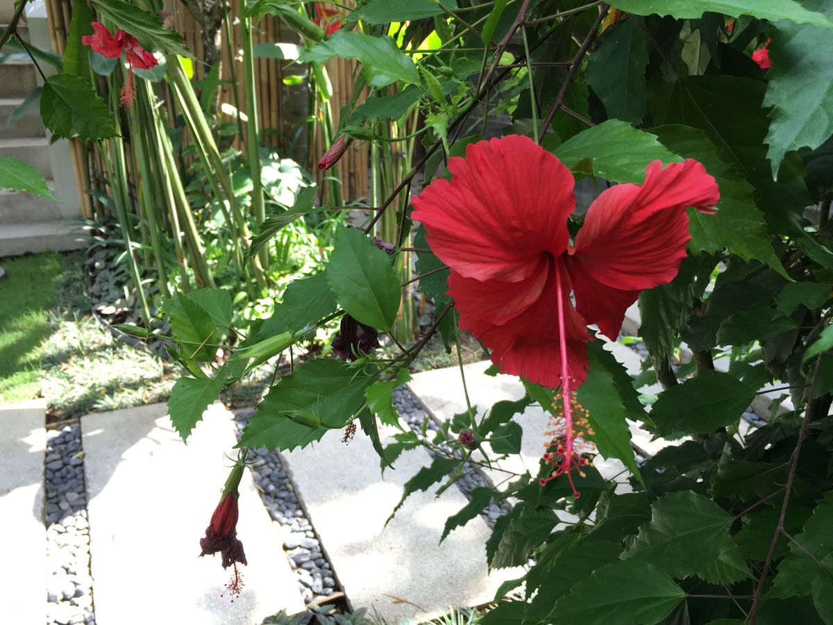 アユンタユン寺院はきれいに整備された公園でした。ただ、中には入れないので外から塀をぐるりと一周して覗く感じでしたけど。寺院内は色んな植物が植えられていて、ちょうど私たちがバリに行った11月中旬はプルメリアが一番咲いてる時期だったらしく、白とかピンクとか赤とか色んな花がみれて楽しめました。