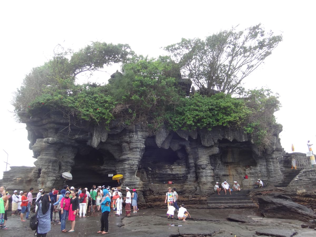 タナロット寺院は海の上に立っていてとても神秘的でした。引き潮?だったのか近くまで行くことができました。下が海水で濡れて岩肌なので足元が滑りやすいので少し注意が必要です。滑って転んでいる人もいました。
