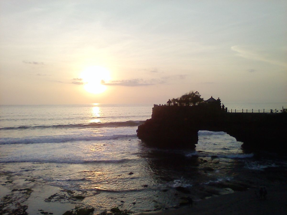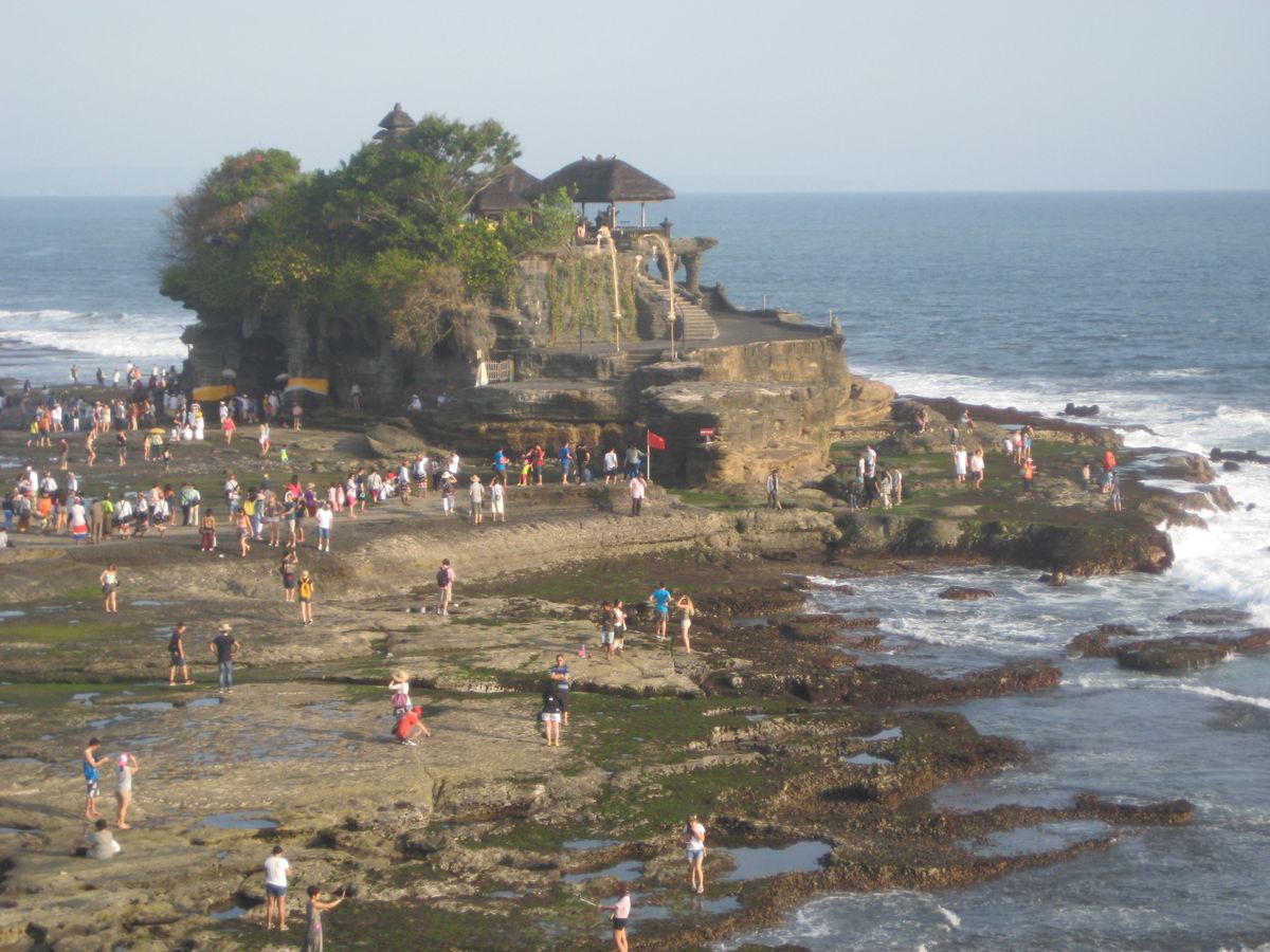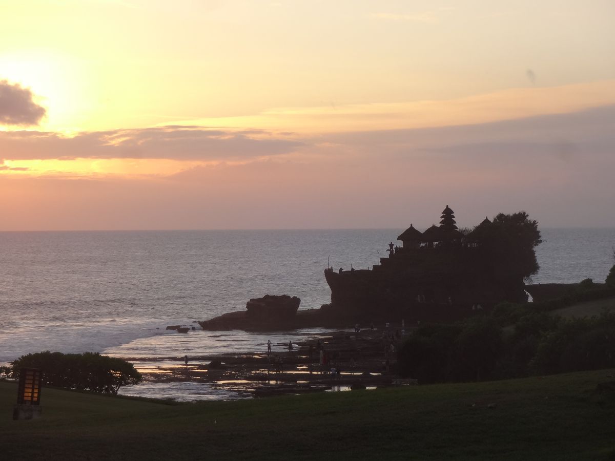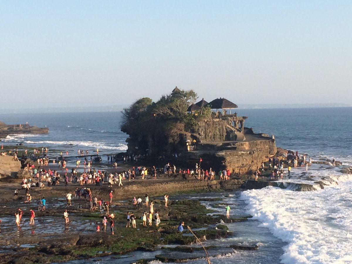先にタマンアユン寺院に連れて行ってくれます。お祭りの時に開く門の前は何か重みの様な歴史を体感出来ます。闘鶏が盛んなようで、そこにも日本で国技館っぽい(オープンな)ところでしてるそうです。初めて聞きましたが闘鶏の足には小刀の様なナイフを付けて闘うそうです。どちらかが死ぬまで・・ちょっと残酷な気がしますが試合が終わっても次の対戦があり勝つごとに賞金も上がり生活の糧にもなるそうです。それよりも景観は素敵で伝統的な趣があり素敵ですよ。 この後にすごく行きたかったタナロット寺院。バリ旅行には絶対に欠かせない所だと思います。そこで夕陽を眺めるなんて・・・カップルなら一生の思い出になることは間違いないでしょうね。あいにく私は女子友と参加しました(笑)