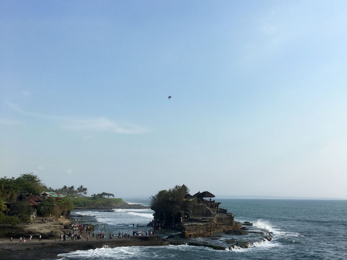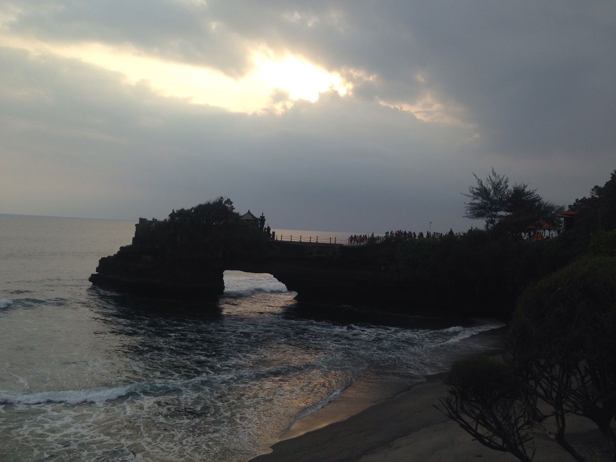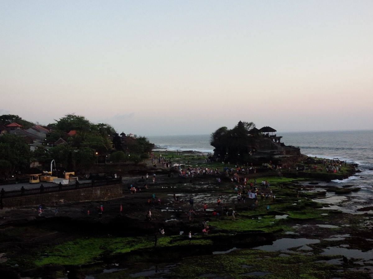 そして、タナロット寺院に行きましたが、まだサンセットの時間ではなかったので、一通り観光してから夕食の場所に移動し、そこで夕陽をみることにしました。ちなみにこの日は潮が満ちていて寺院の方に行くことはできませんでした。