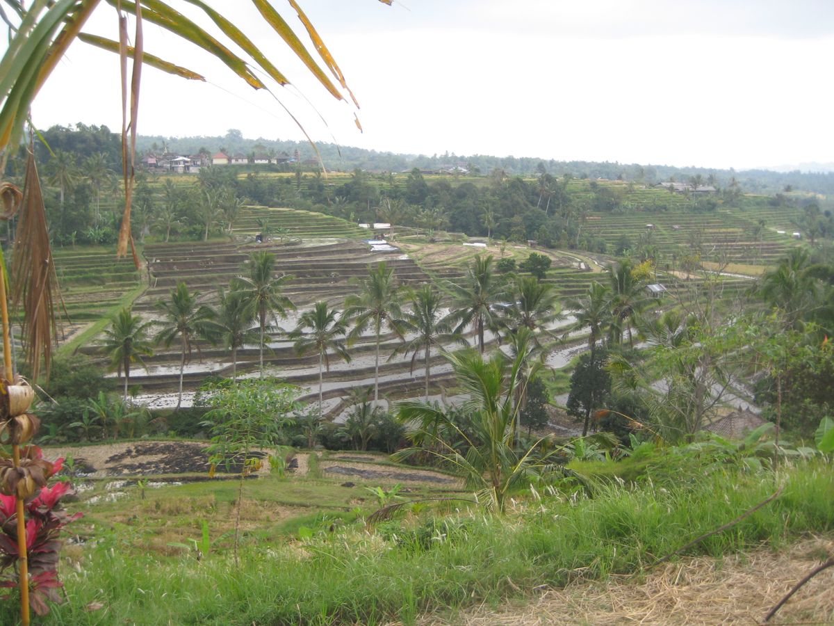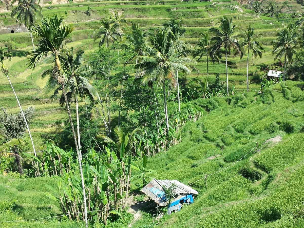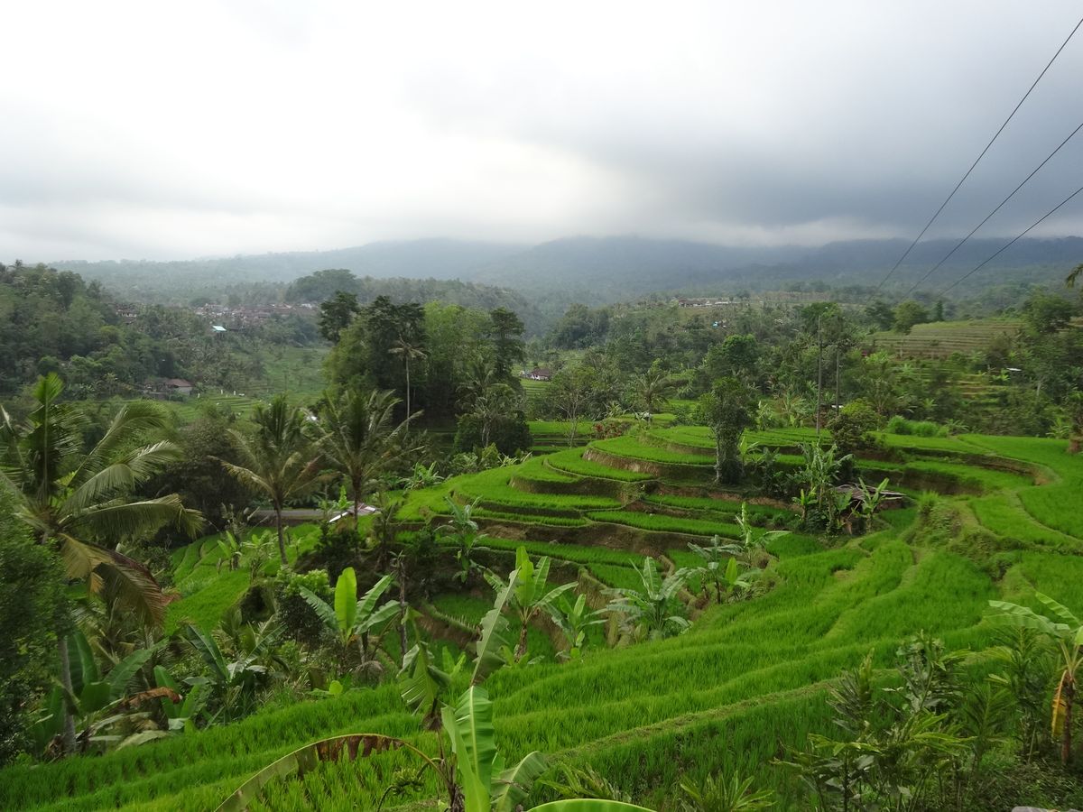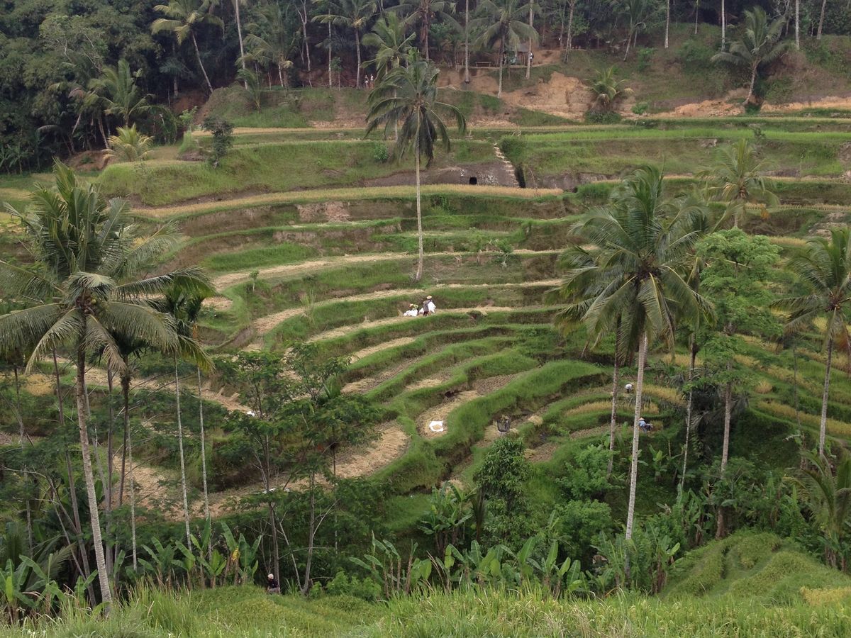 夫婦でバリ旅行の3日目にスミニャックのホテルへ昼過ぎにお迎え頂き半日観光をすごくラッキーにも我々二人だけの貸切との事でスタートしました。ガイドさんの説明では生憎ジャティルイ棚田は水利システム工事の関係で折角の棚田水が入っていないとの事でしたので、我々の希望として日程に無理が無ければ、ウブドにあるトゥガラランの棚田への変更を希望したところ快く応じて頂け、懐かしい棚田の風景を見る事ができました。