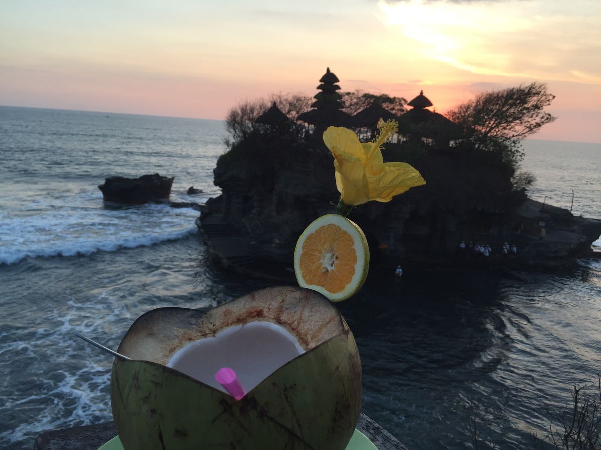 タナロット寺院が特に印象的でした。 曇りがちだったのですが日没のころは晴れてきて少し雲がかかっていたので完全ではありませんでしたがとてもきれいな夕日を見ることができました。 トイレがあまりなくトイレに行くのに歩きまわってしまったので先に済ませておけばよかったと思いました。 帰りにはスーパーに寄ってもらい夕食は行きたかったワルンで取りました。 貸切なので自由に行動できたのもとてもよかったです。
