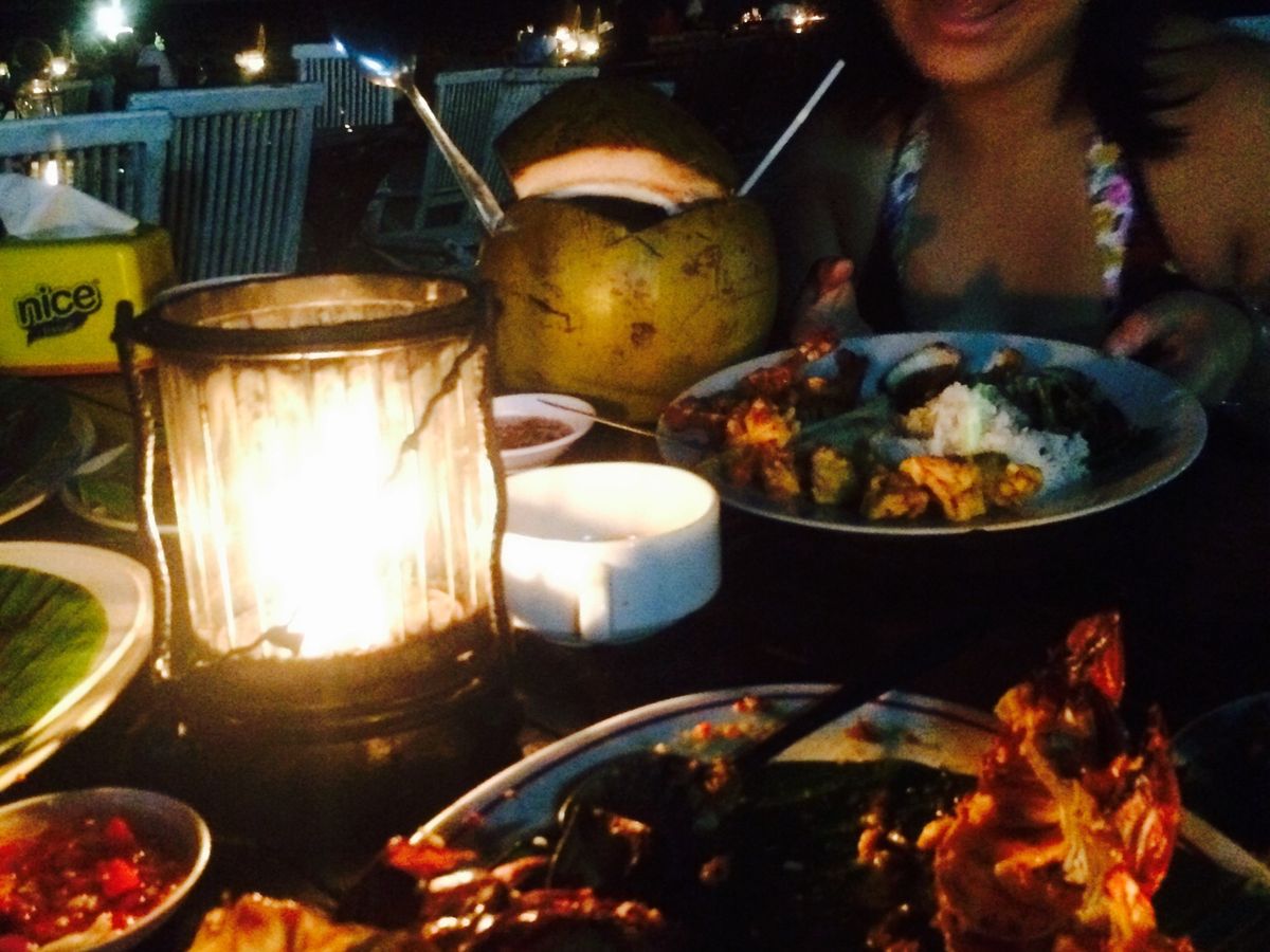 タナロット寺院ではインド洋に沈む夕日を静かに眺めながらシーフードディナー。