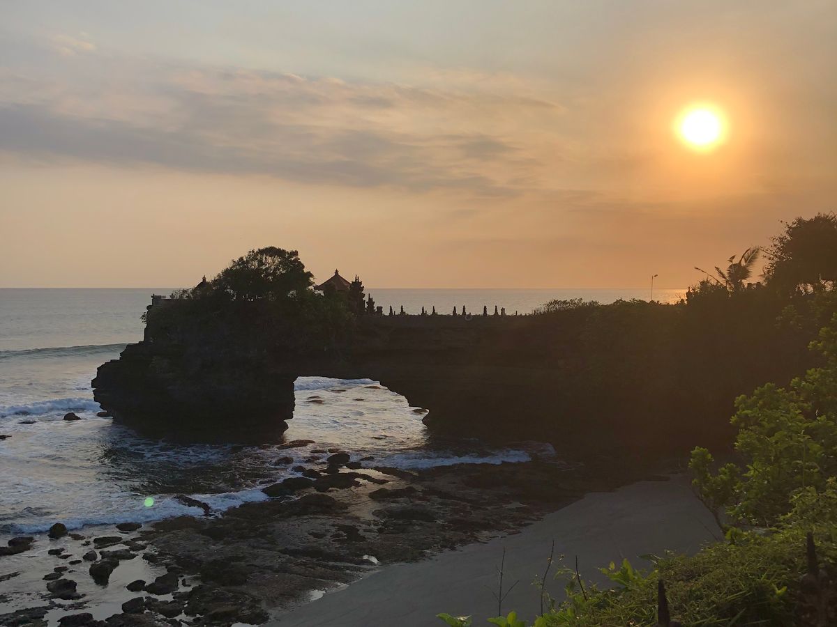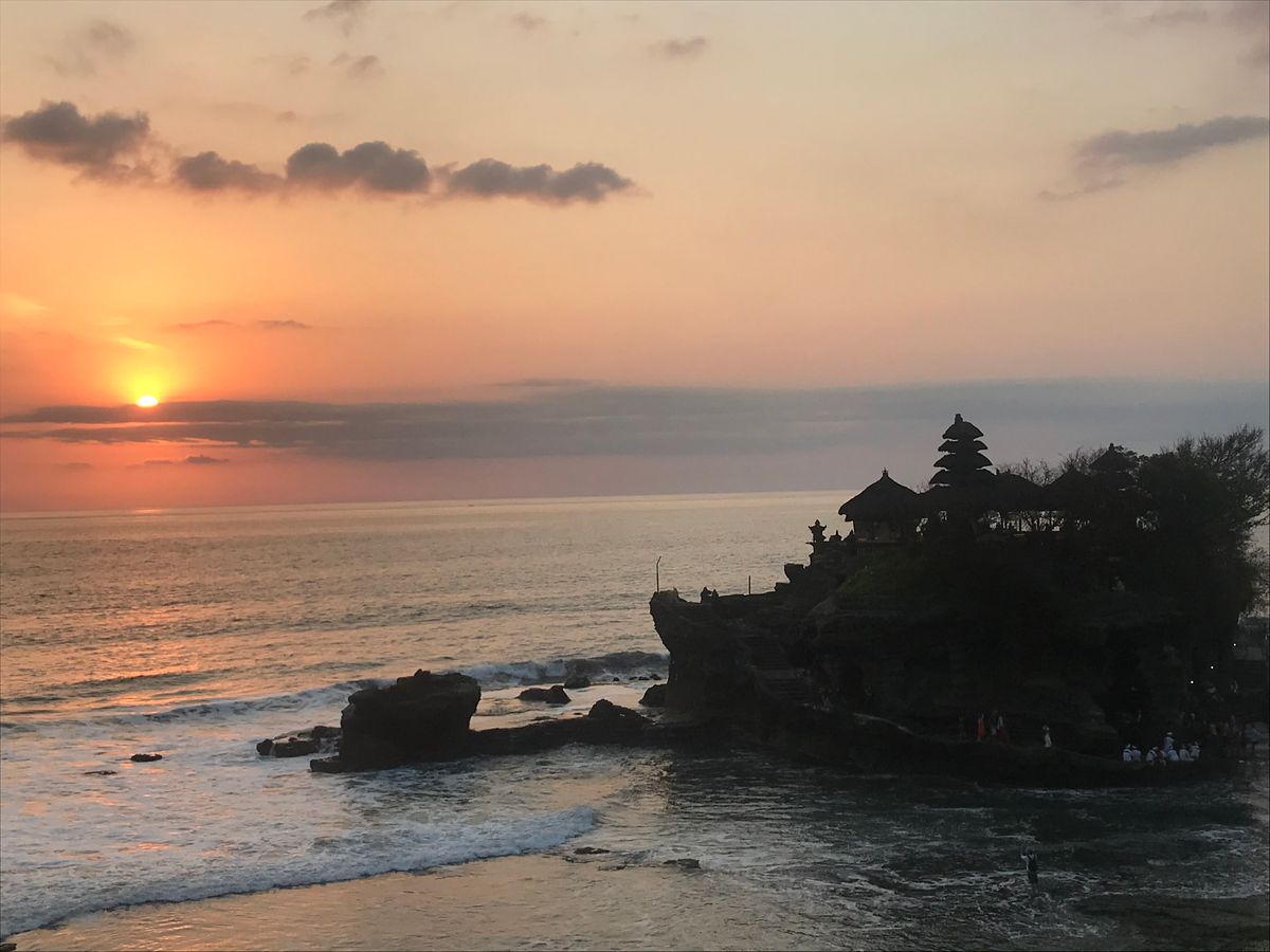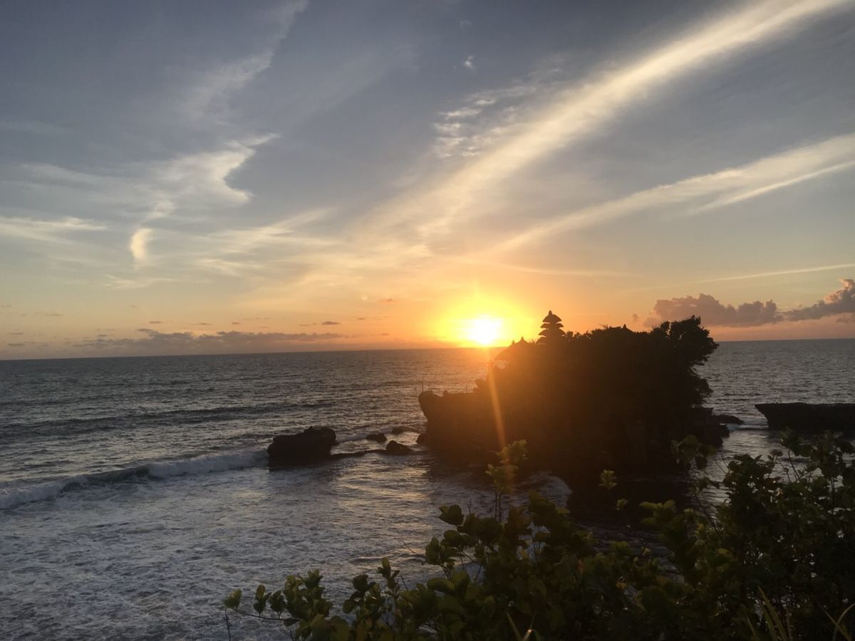 世界遺産「タマンアユン寺院」は元々王家のものでヒンズー教の神々と王族の先祖を祀っており、いわばプライベートの寺院。バリは当時9つの王族が支配しててそれぞれこういう寺院があるらしいです。ガイドの方が色々教えてくれるので観光の楽しみが倍増します。ちなみに寺院は3つの門があり、最後のは一般人は入れません。夕陽で有名な「タナロット寺院」は海の岩の上にあります。普段は近寄れませんが干潮の時だけ歩いて渡れます。たまたま本日夕暮れ時は干潮でラッキーでした!夕陽も素晴らしかった!