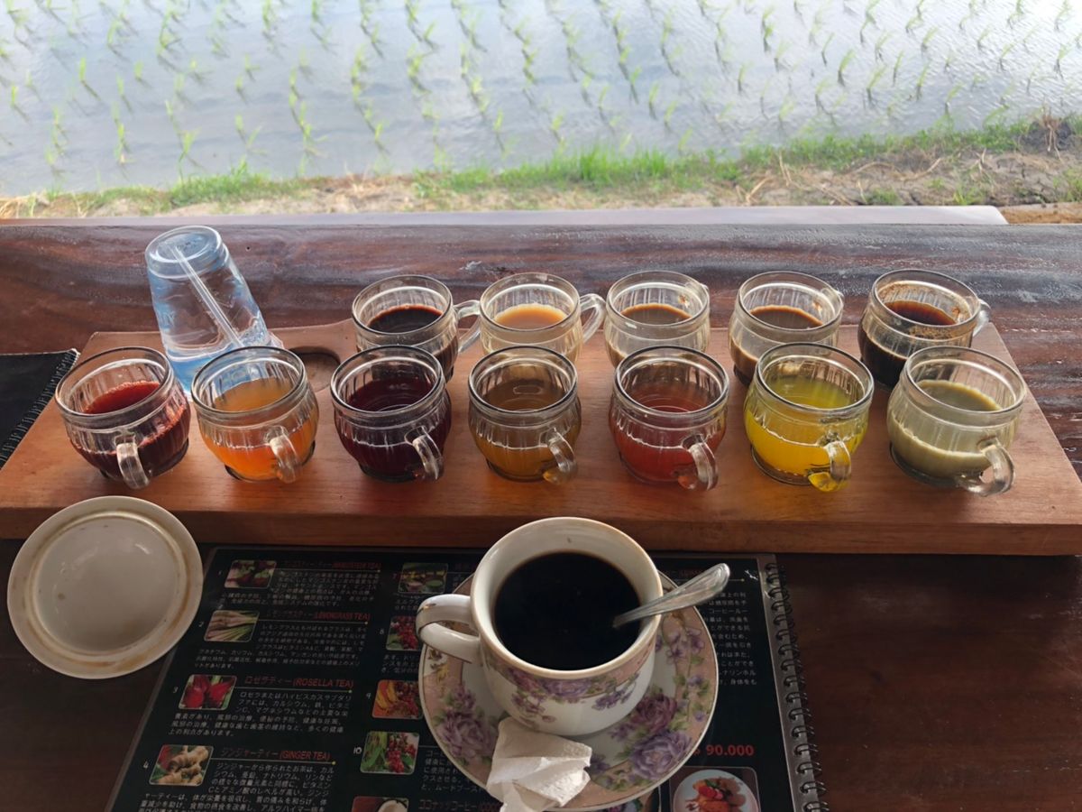またタナロット寺院まで時間の空きがあったので、途中にコーヒーやお茶が13種類試飲ができる所に寄ってもらえました!