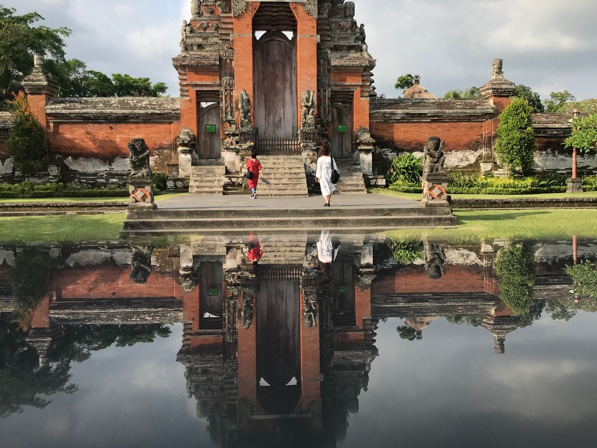 ホテルにお迎えに来て頂いた際に、デンパサール市場ではなくウブド街歩きの希望を伝えたところ、ご用意頂いたプランとまったく変わってしまったにもかかわらず快く承諾して頂き、希望通りの一日を過ごす事が出来ました。車中、バリの宗教の事や日本に来られた時の事など、日本語堪能なガイドのブリさんに色々とお話を伺いながらいざ、ウブドの街へ。まずはサレンアグン宮殿。彫像、割れ門などバリらしい雰囲気を身近に感じた後ブリさんとはしばしお別れ…。ウブド市場、ホットなモンキーフォレスト通り、デヴィシタ通り、ハノマン通りとひたすら歩いてショップめぐり。街歩きラストはブリさんオススメの居心地良いナチュラルカフェにて遅めのランチ。エントランスで靴を脱いで疲れた足を投げ出し、風に揺れる植物と水音にまったり…。その後またブリさんと合流し、タマアユン寺院、タナロット寺院のサンセットに連れて行って頂きました。特筆すべきはブリさんのフォトテクニックです!タマアユン寺院での写真をぜひご覧あれ!割れ門前に立つ私達の影が、無いはずの水辺に…??…こうしたドラマチックなフォト撮影で私達をたくさん楽しませてくれました。タナロット寺院のサンセットでは、引潮だった為奥まで歩いて行って絶好の観賞ポイントにて待つ…待ち続ける…。次第に大きな太陽が水平線に吸い込まれる神々しい様子を静かに見つめる事ができました。