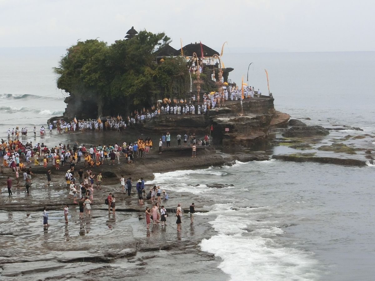 天候には恵まれなかったがタナロット寺院は絶景でした。大きな村からの参拝集団がきており、見どころだったのですぐにガイドが近くまで案内してくれ、音楽隊もおりかなりの迫力でした。貸し切りだったので、自由に休憩したり、行きたい所に行きました。ローカルレストランの夕食は美味ではないので薦めません。