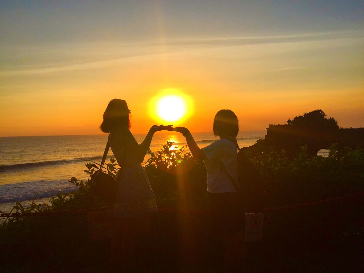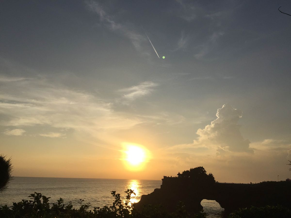 そして、いよいよメインイベントのタナロット寺院へ。観光客で激混みでしたが、ワヤンさんが夕日がよく見えるカフェへ案内してくれました。この日は少し曇っていたけれど、日本で見るよりずっと大きな夕焼けが見れますよ。夕焼けをバックに結婚式の写真を撮っている夫婦に出会ったけれど、ウェディングドレスが海水で濡れていたので、大丈夫か……と他人のドレスが心配になりました。