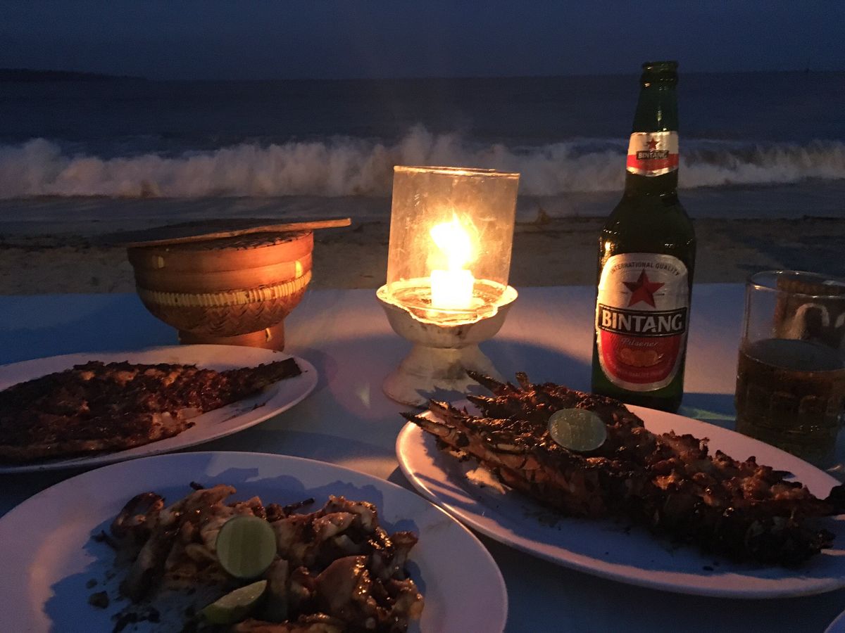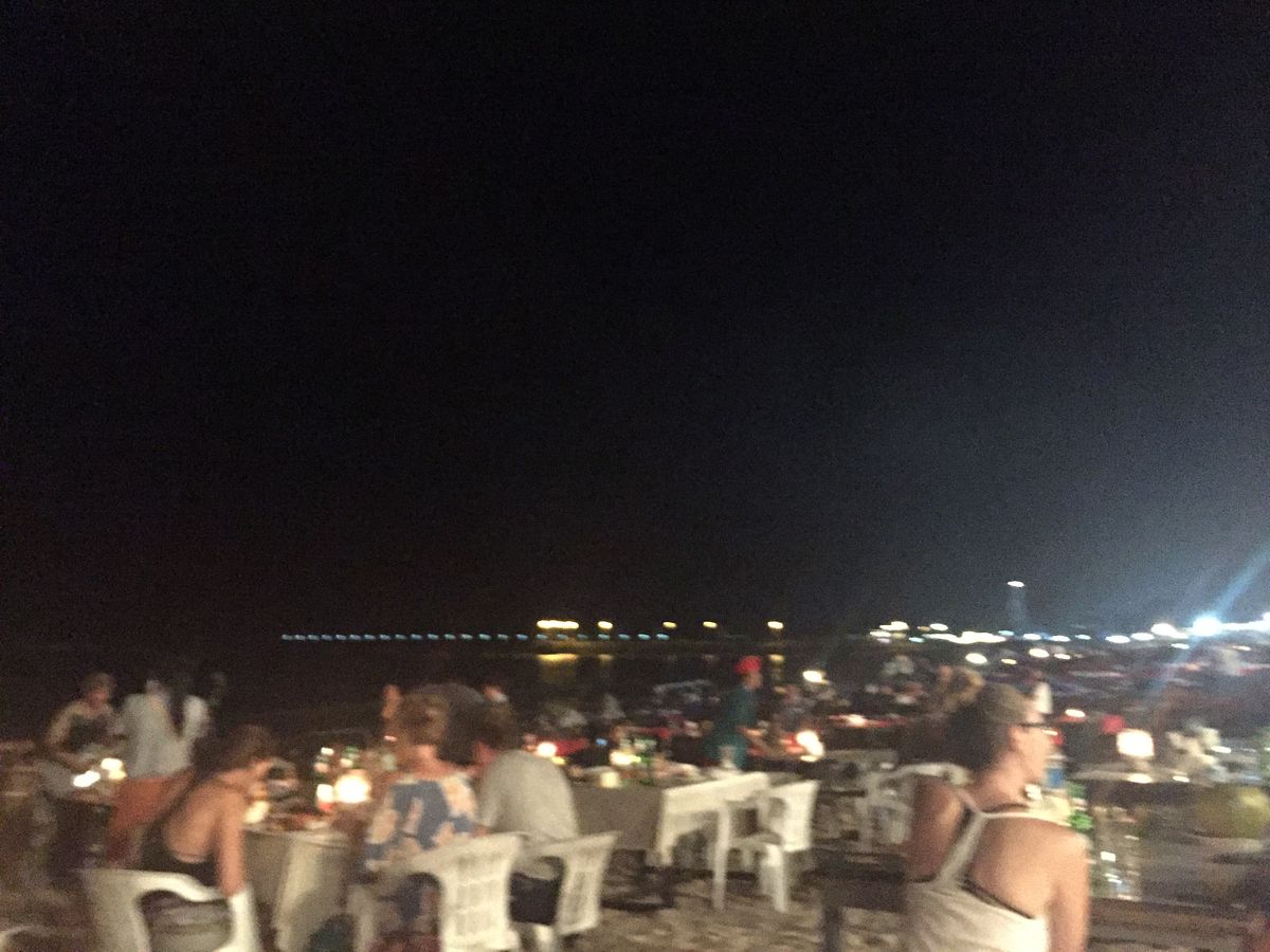 海岸に沿ってシーフードのお店が並んでいて、自分で食べる魚を選んで調理してもらい、海辺のテーブルで食べる。