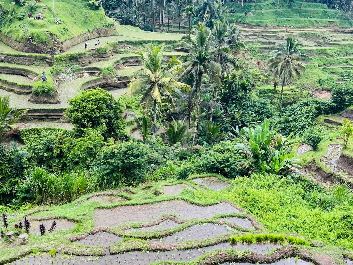 朝バケツをひっくり返したような大雨で、雨季は仕方ないかなと思っていましたが、ウブドに向かうとみるみる天気が良くなり、棚田に着く頃にはすっかりと晴れ上がり、汗ばむ暑さになり、気が利くガイドさんのお陰で、要所要所で良い写真を撮ってもらい、楽しい1日となりました。