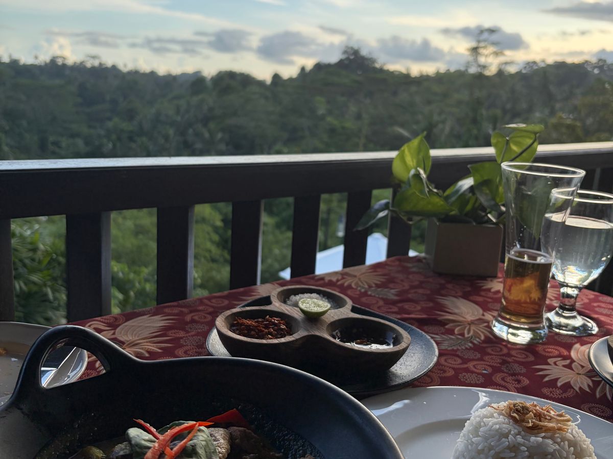 ランチのインドネシア料理はなかなかできない体験だったので、とてもよかったです。カユマニスウブドでのディナーは、食事もロケーションも素晴らしく、幸せなひとときでした。