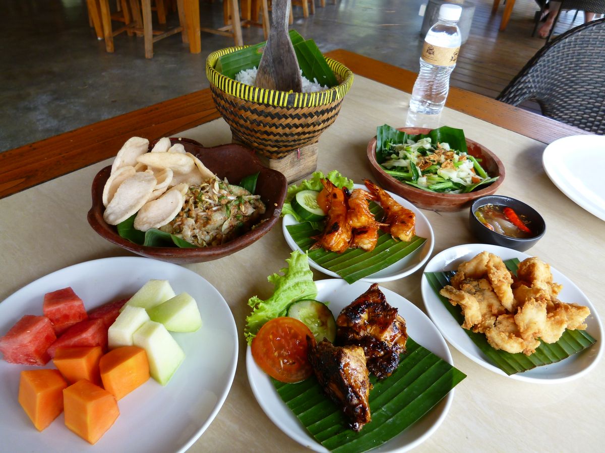 池の上に並ぶ水上コテージのような個室で、インドネシア料理の数々を堪能しました。