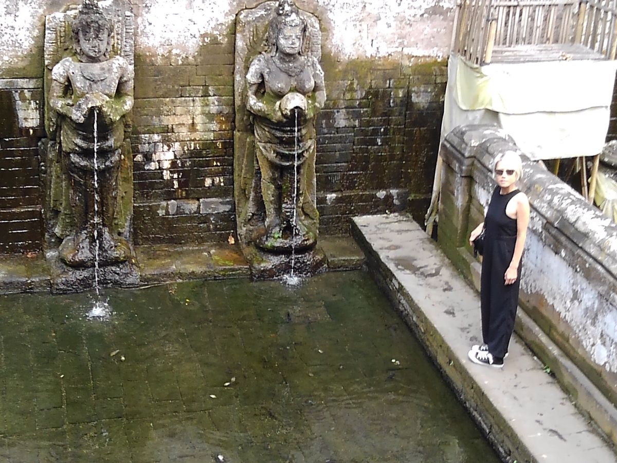 ゴアガジャに着き、ガイドさんに説明をしてもらいながら遺跡を見学しました。至る所でチェック柄の布を見かけ、何げなく質問してみたら、魔除けの意味合いがあることや歴史的な将軍が好きであった等々、興味深い説明をしていただきました。暑い中だったので、頭が回りきらなかった事が悔やまれます。宗教についてもシヴァとブッダがバリの宗教のベースになっているとの事で、街中でブッダをよく見かけるのにも納得しました。